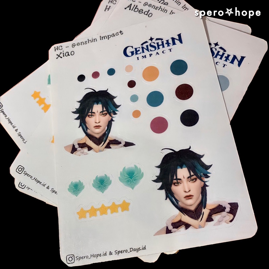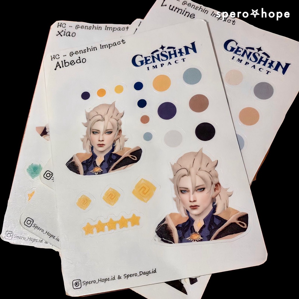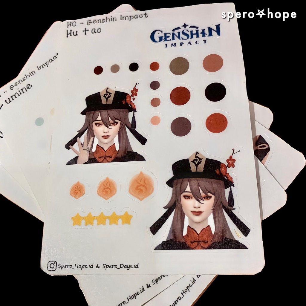 SPEROHOPE - #HCGI Cute Stiker Sheet Genshin Impact ver. Sims 4 Sticker Laptop Sticker DIY Diary Sticker Jurnal BUJO Planner Deco Stiker Hias Stiker Laptop (Hu Tao, Xiao, Albedo, Lumine )