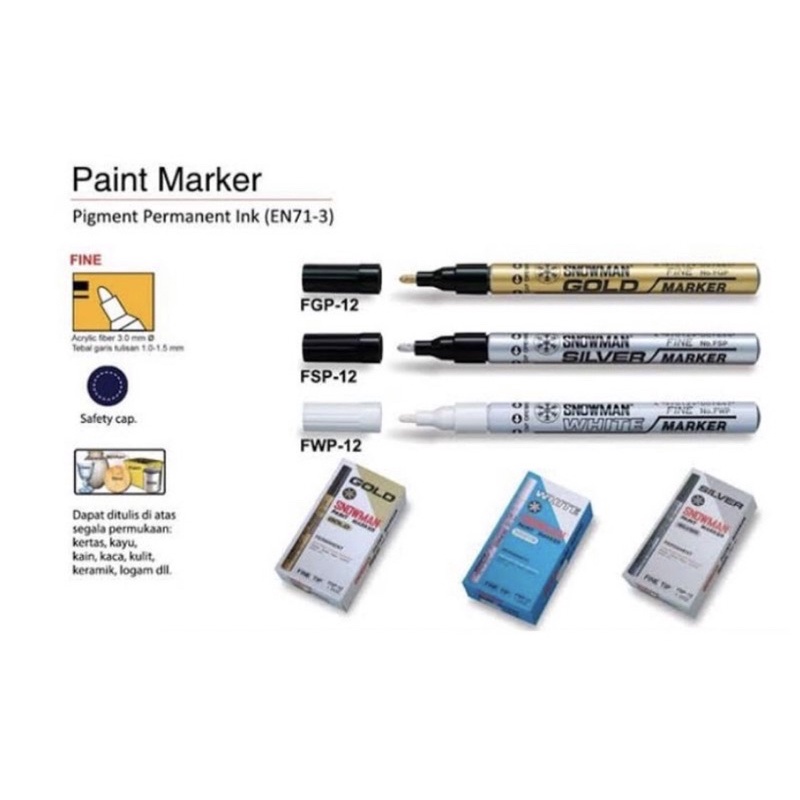 SPIDOL SNOWMAN PERMANEN FINE FGP-12(Gold) / FWP-12(White) / FSP-12(Silver) (Harga per biji)