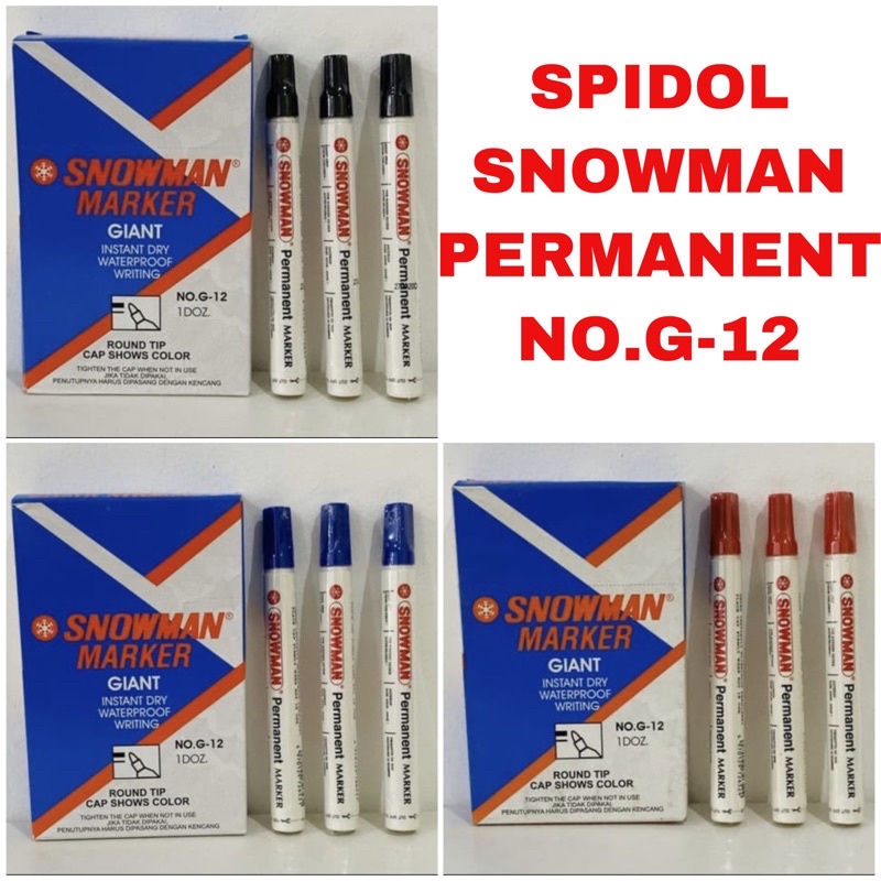 SPIDOL SNOWMAN PERMANENT MARKER NO.G-12 ( HITAM , BIRU , MERAH ) / 1 BOX ISI 12 PCS