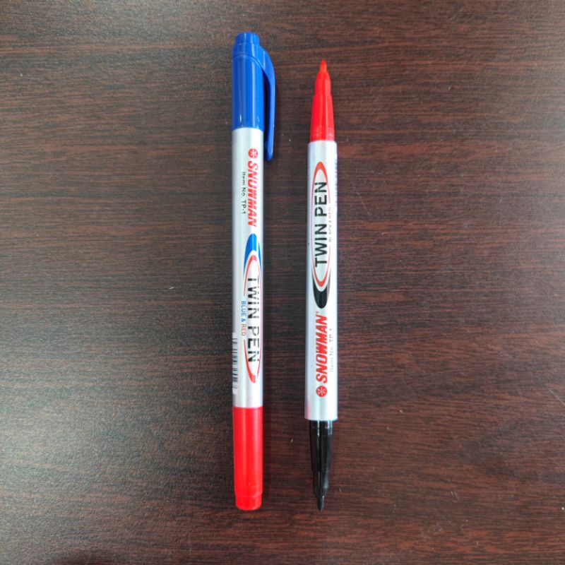 SPIDOL SNOWMAN TWIN PEN 2 WARNA ( BIRU - MERAH ) / ( HITAM - MERAH )