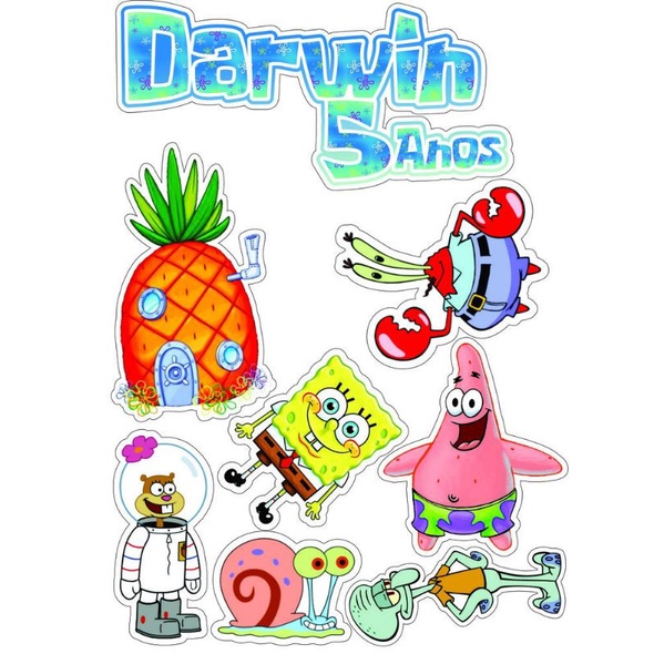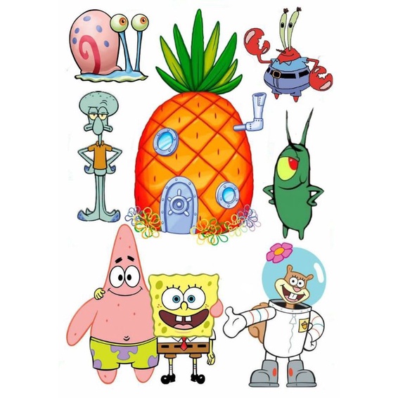 SPONGEBOB PRINTABLE WATERPROOF ANTI AIR STICKER ISI 37 BUAH 5 LEMBAR