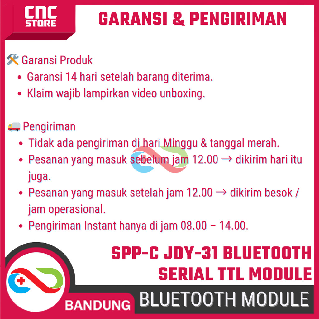 SPP-C Bluetooth Serial Module JDY-31 – Modul Bluetooth TTL Compatible HC-05 / HC-06 untuk Arduino & Mikrokontroler