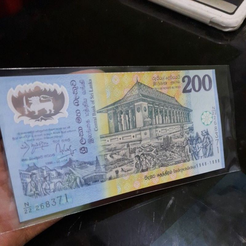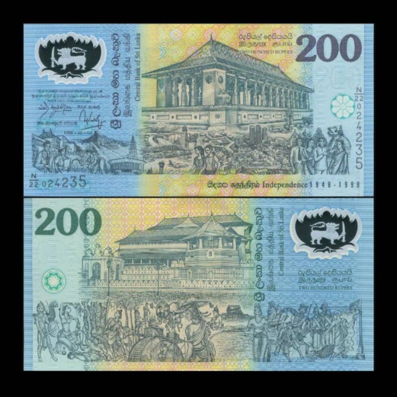 SRI LANKA 200 RUPEES 1998 UNC POLYMER COMMEMORATIVE 50Th ANNIVERSARY