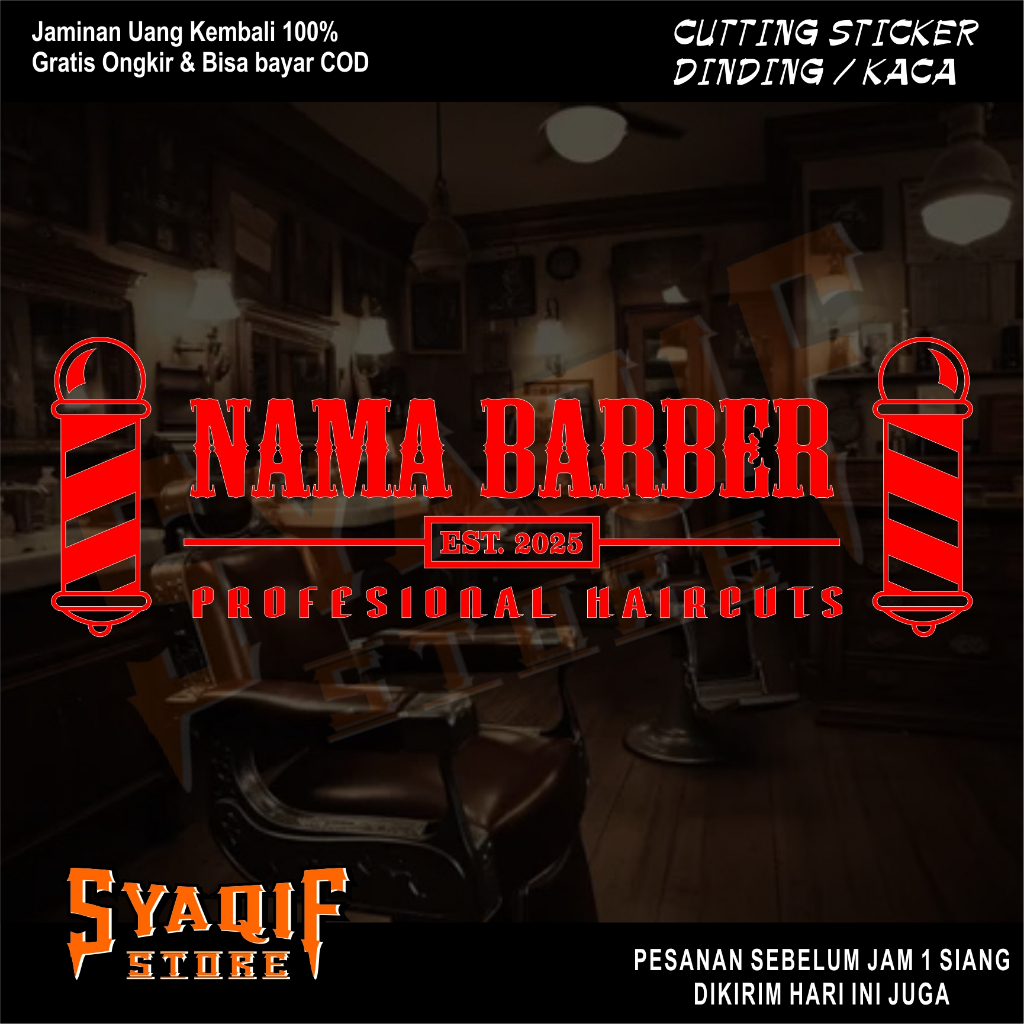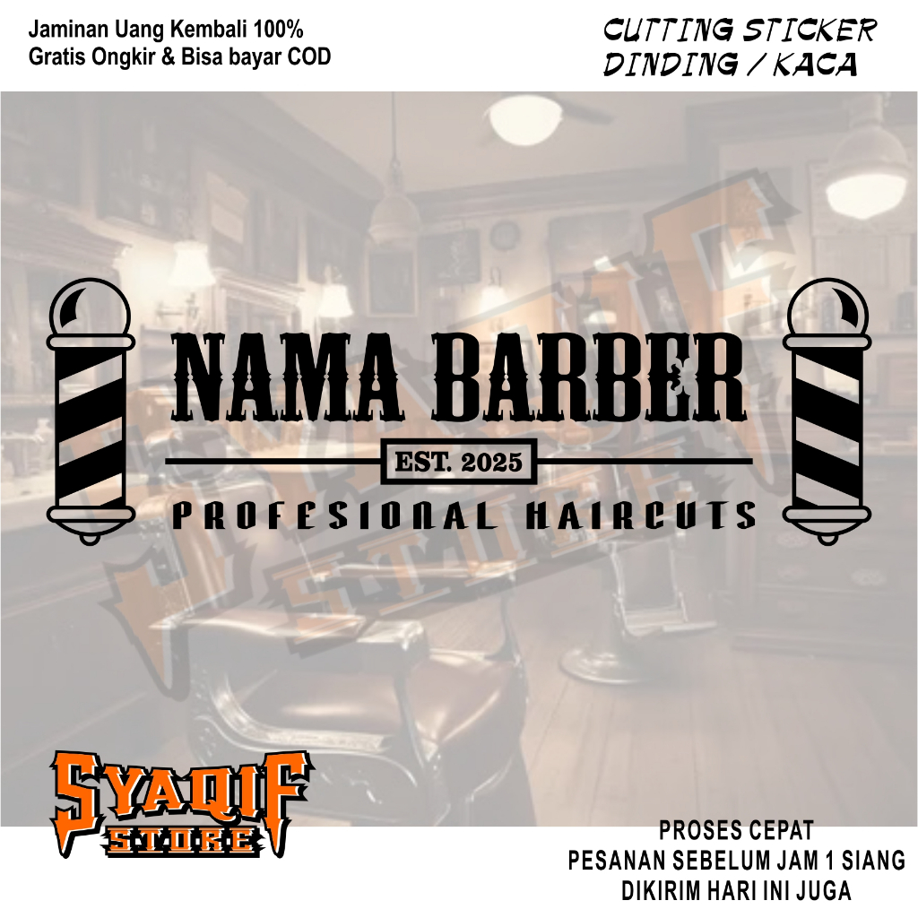 SS Sticker Stiker Kaca Dinding Barbershop Barber Pangkas Rambut Cutting Indoor Outdoor