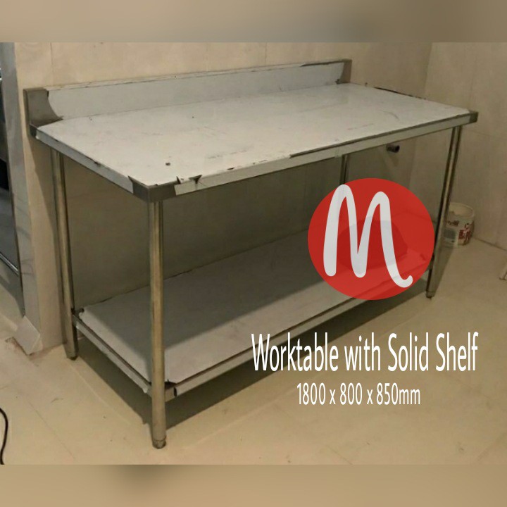 SS Worktable with solid shelf - meja dapur / meja produksi 1800x700x850