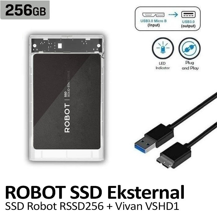 SSD SATA Solid State Drives 2.5" 256GB ROBOT Paket SSD Eksternal Bundling