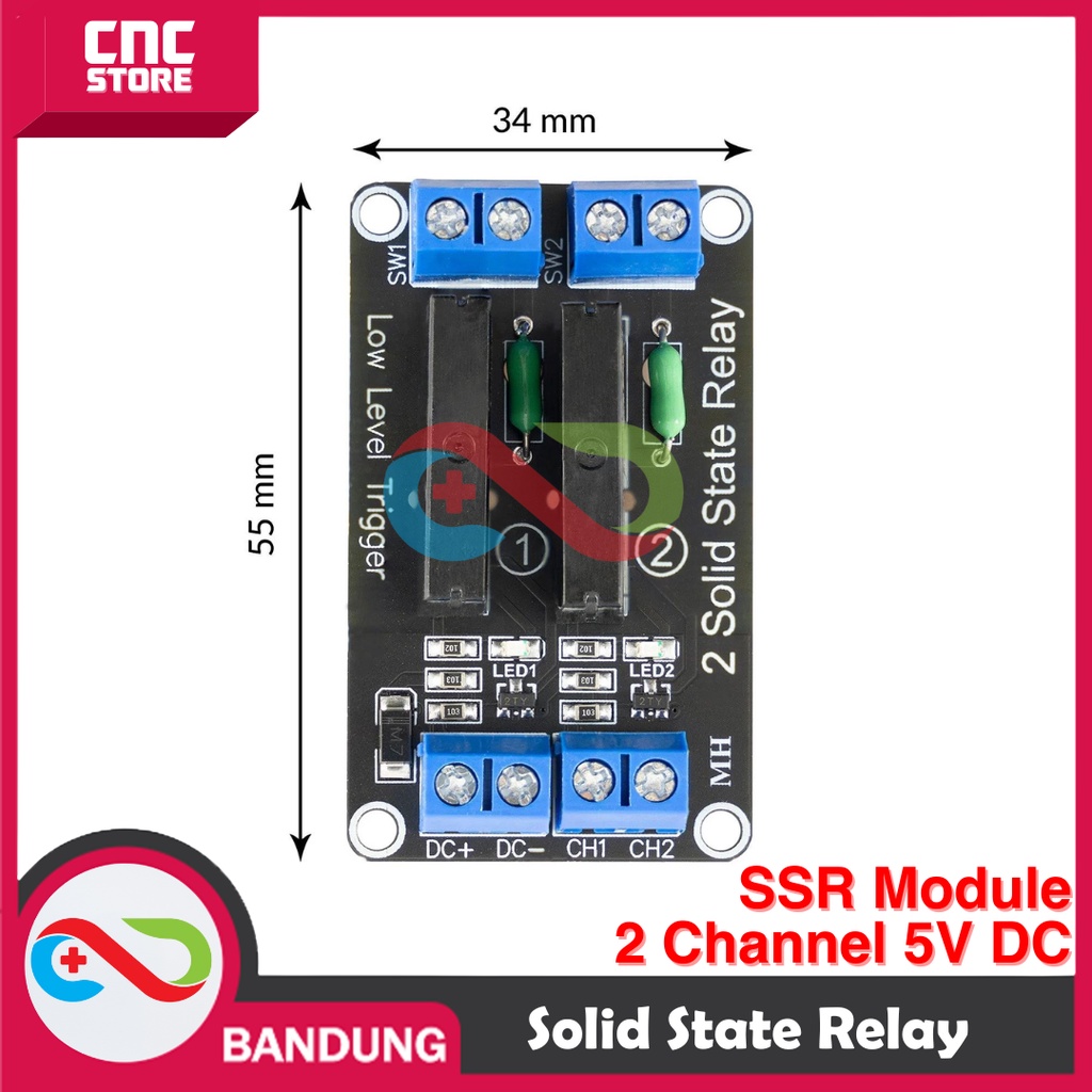 SSR SOLID STATE RELAY MODULE 2 CHANNEL 5V DC FOR ARDUINO