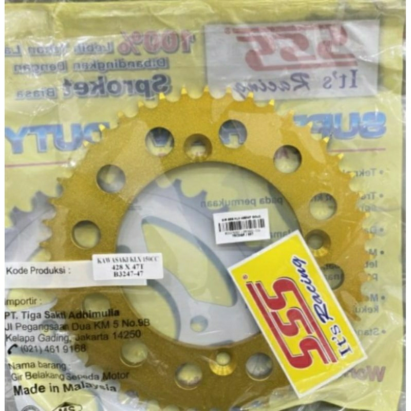SSS Gear Belakang Gold Emas Kawasaki KLX 150 KLX150 D-tracker Tipe 428 Tebal Original SSS