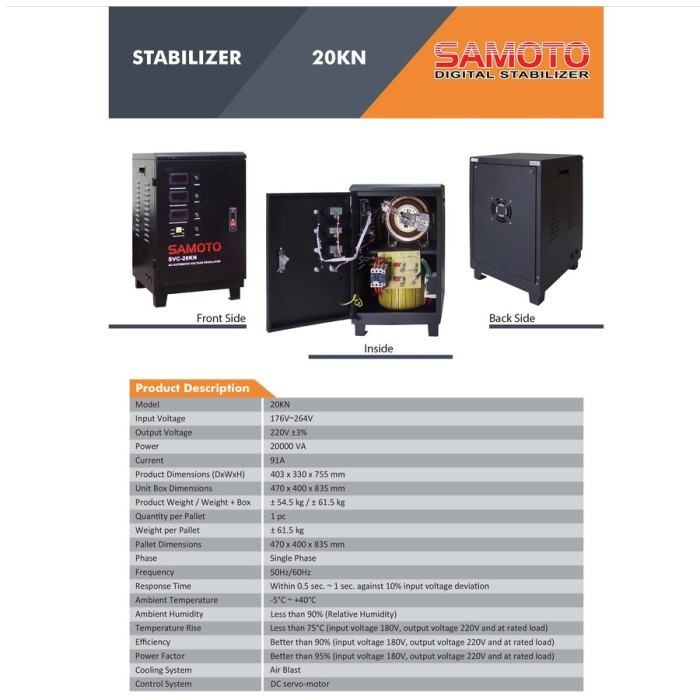 STABILIZER SAMOTO 20KVA 1 PHASE - STAVOLT SAMOTO 20000VA SINGLE PHASE