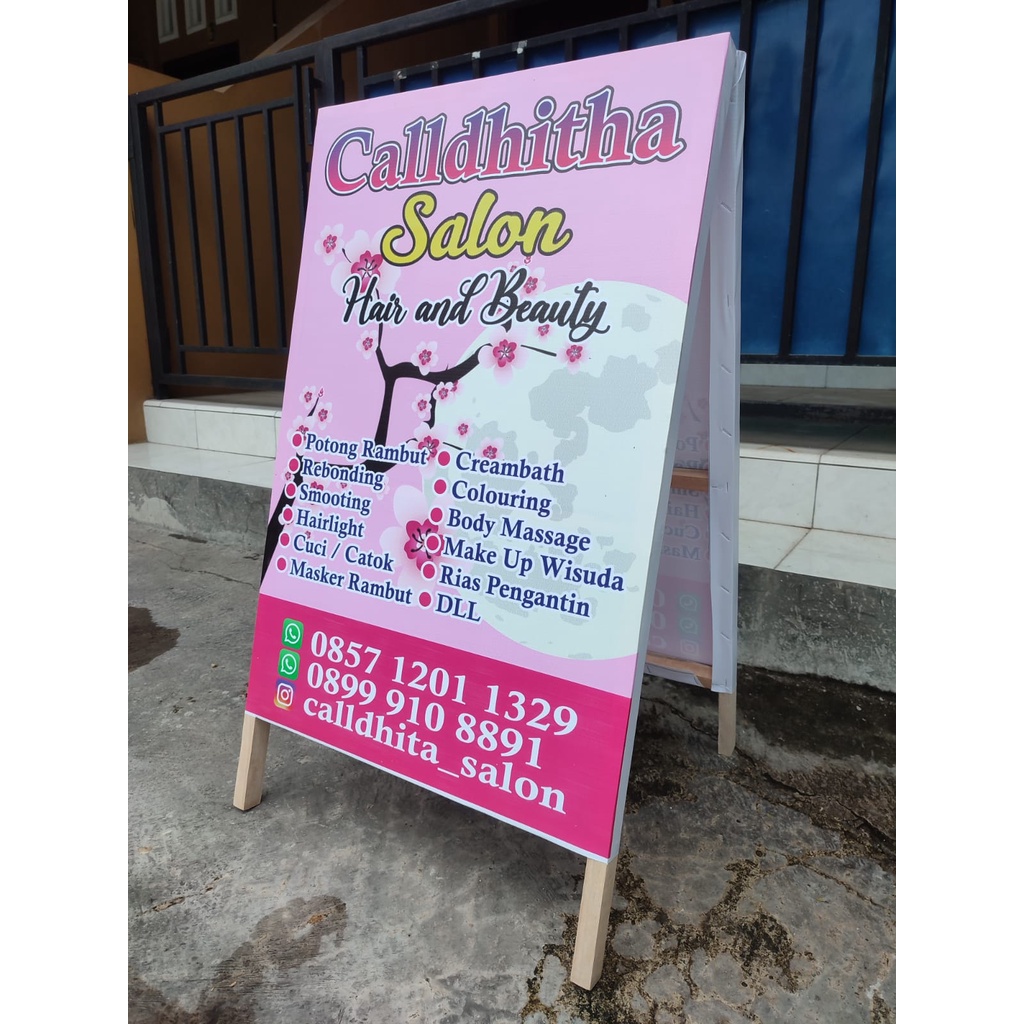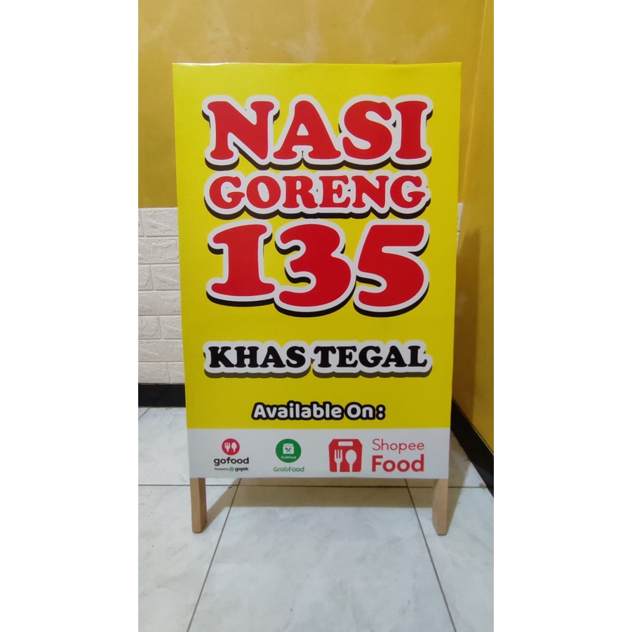 STAND BANNER KAYU UKURAN 50 X 85 + DESAIN - SEGITIGA BANNER 2 SISI - PAPAN PROMOSI SEGITIGA BANNER