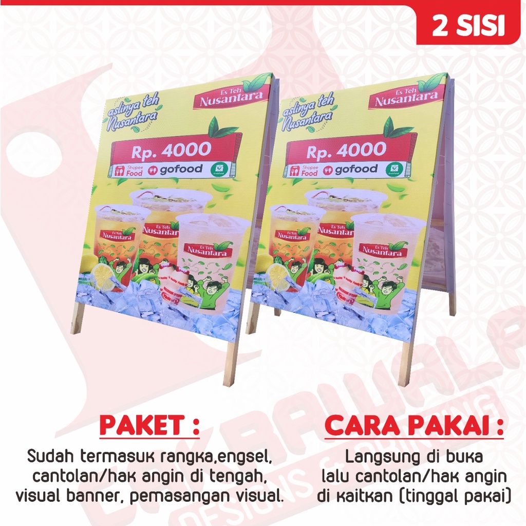 STAND BANNER KAYU UKURAN 60 X 75 - STANDING BANNER PROMOSI SEGITIGA
