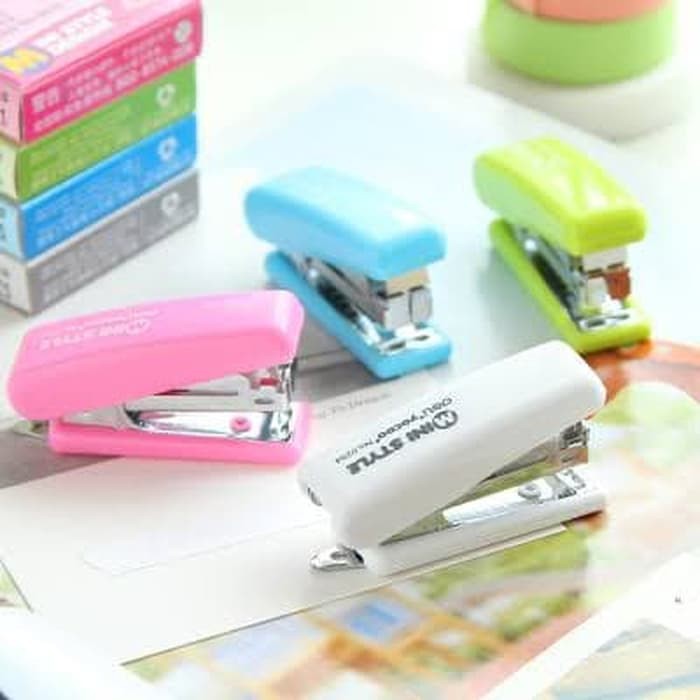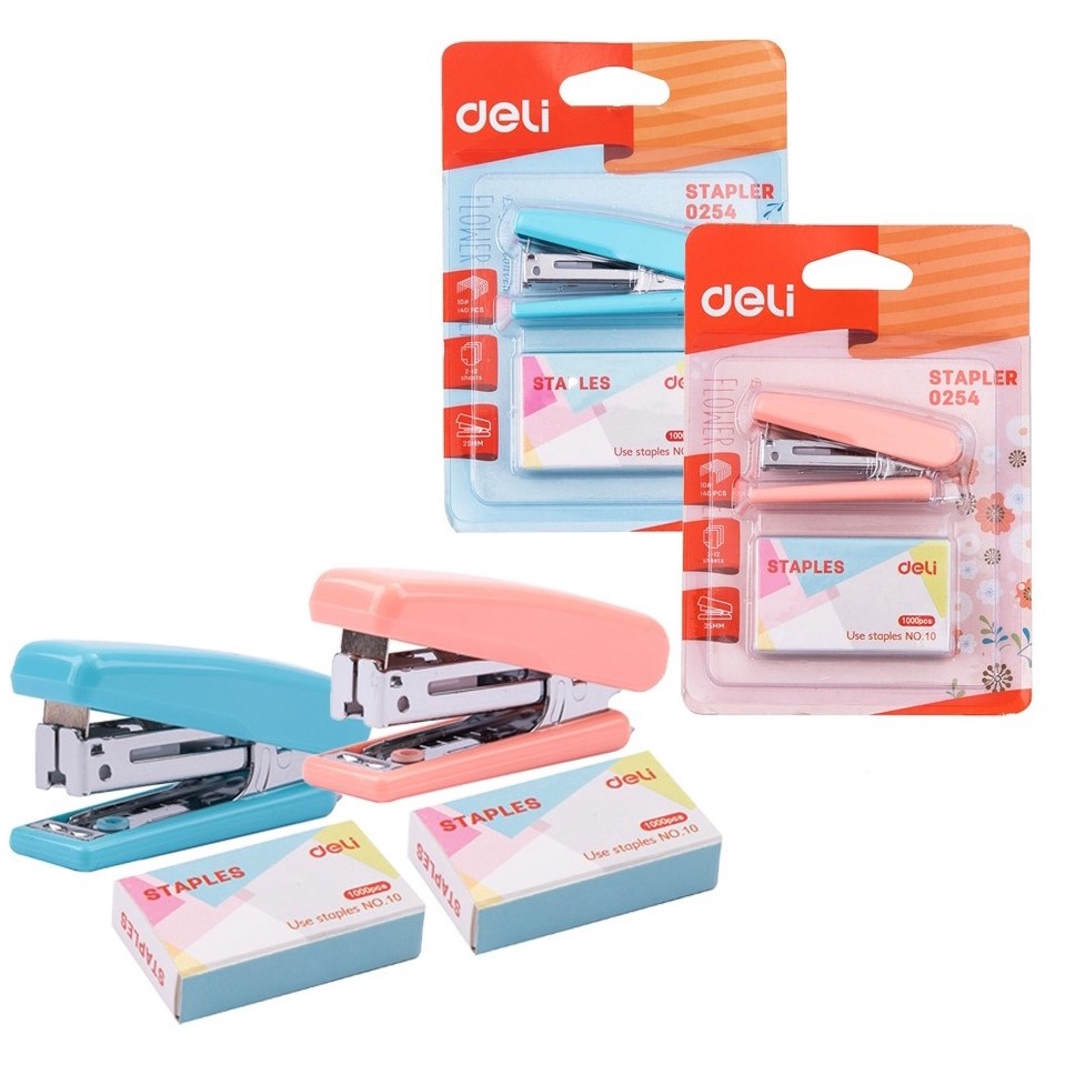 STAPLER STAPLES MINI SET DELI 0254 LUCU WARNA WARNI KECIL STAPLER POCKET