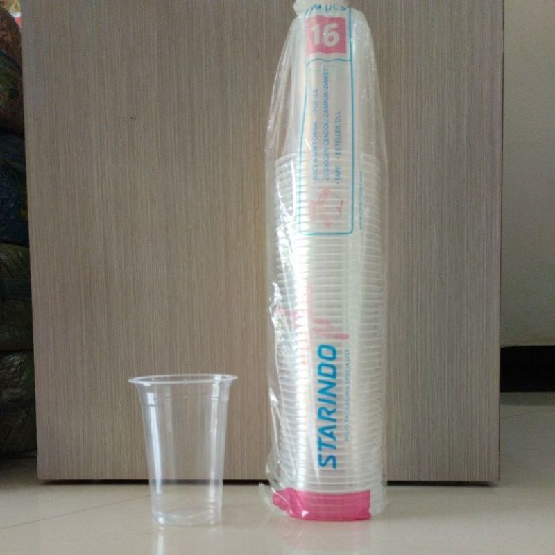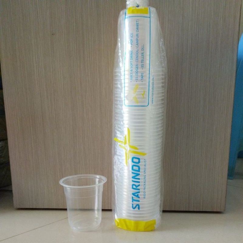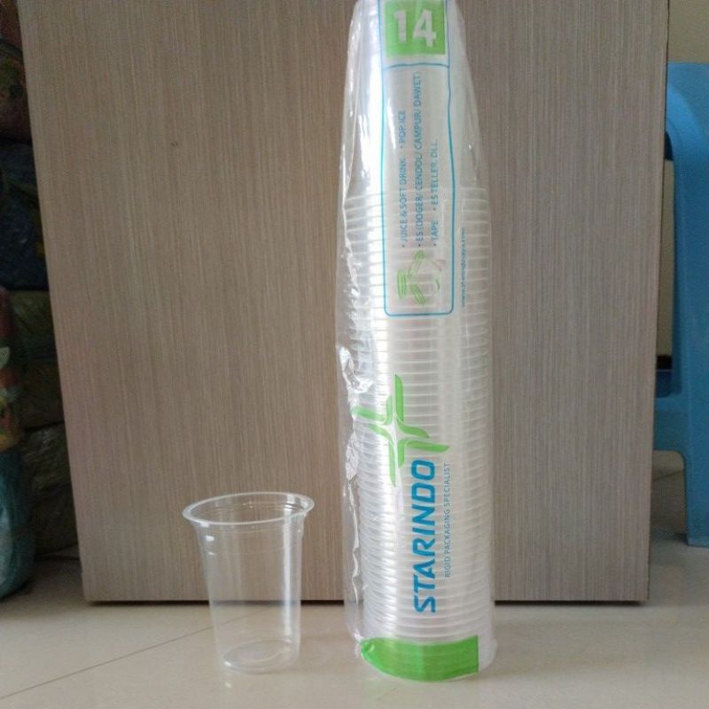 STARINDO Cup Datar Plastik/Gelas plastik PP/12 Oz 14 Oz 16 @50 pcs/Plastik Gelas/Cup Pentol/Cup Jus/Cup minuman