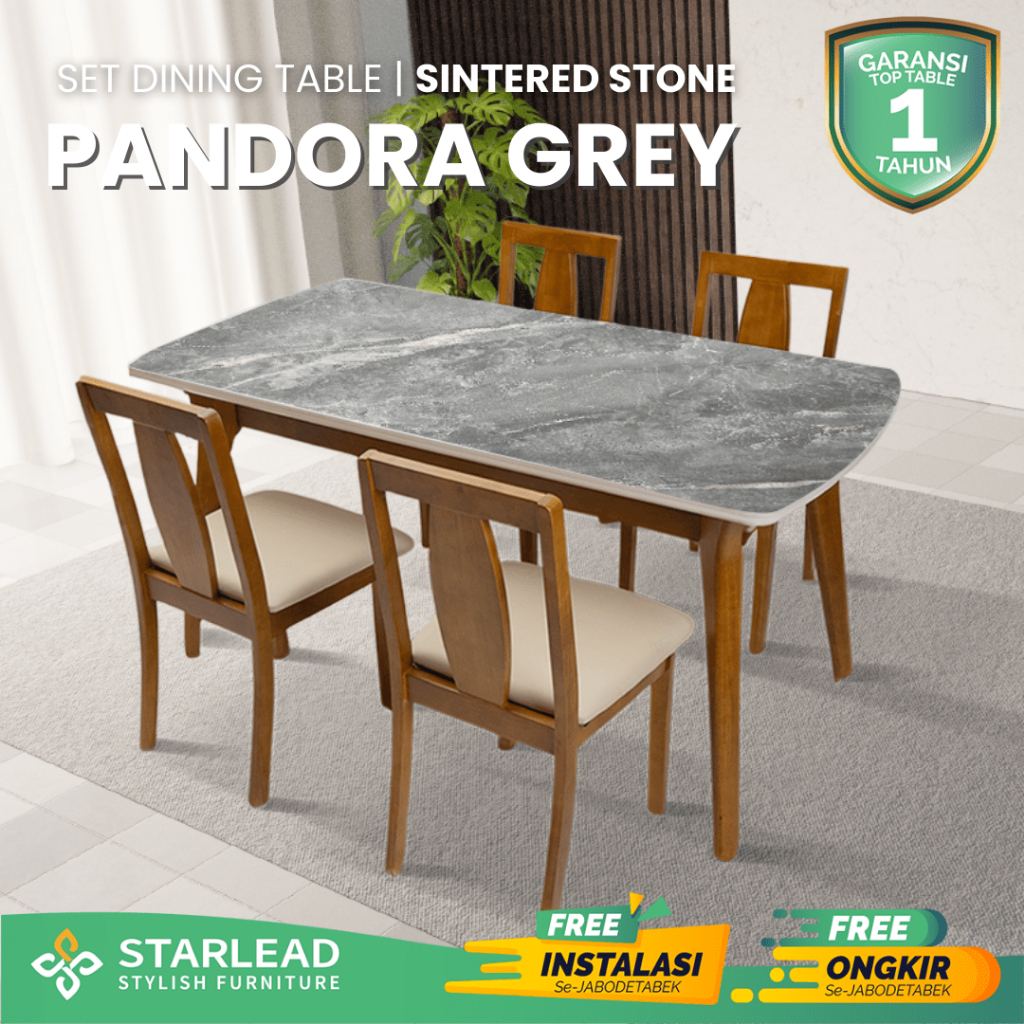STARLEAD Meja Makan Batu Sinter Meja Makan Kaki Kayu Sintered Stone - Pandora Grey