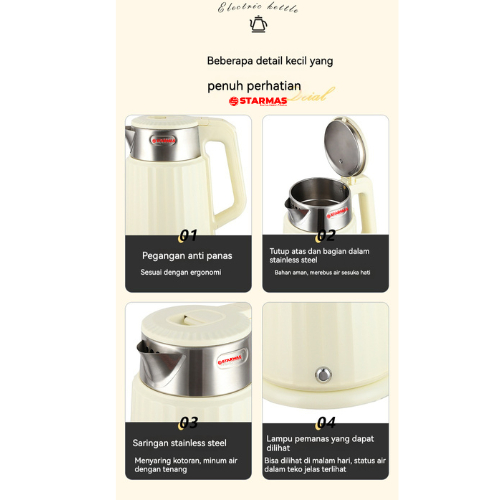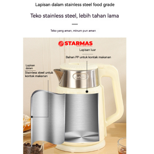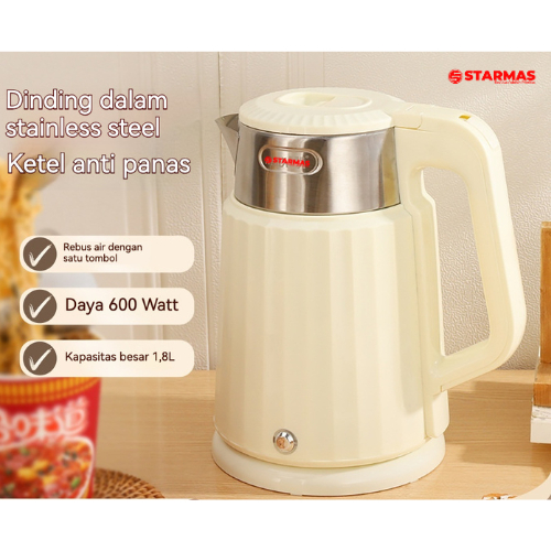 STARMAS Electric Kettle Teko Listrik 1,8 Liter 600 Watt Pemanas Air Stainless Steel Low watt