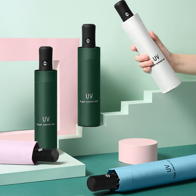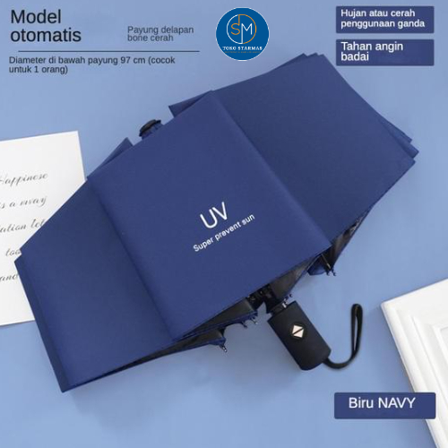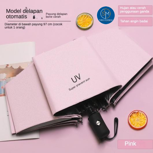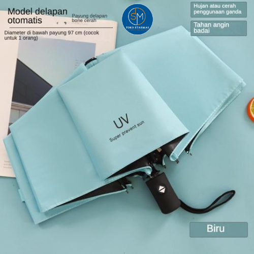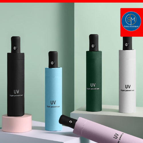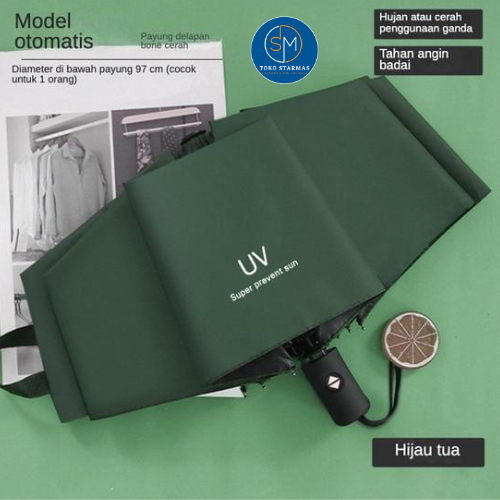 STARMAS Payung Lipat Otomatis Anti UV Warna Warni Polos Bahan Efek Daun Talas 100% ORI Starmas