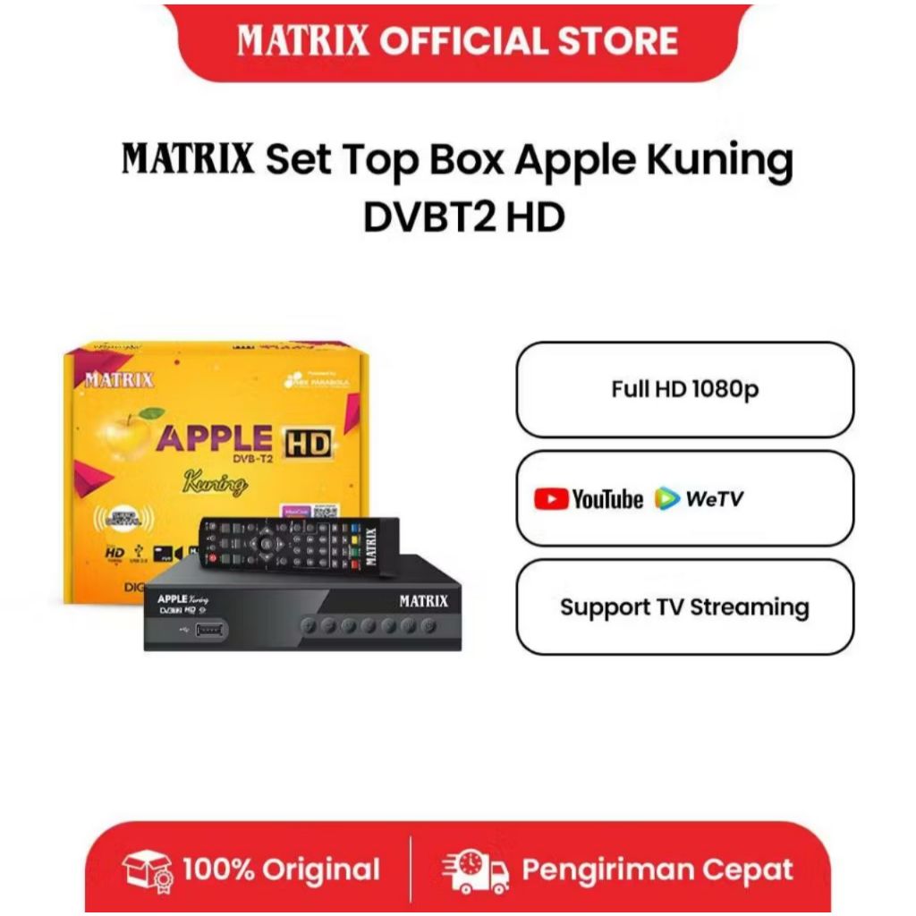 STB SET TOP BOX MATRIX APLLE KUNING SIARAN ANTENA TV DIGITAL RECEIVER DTB T2 STB DTV