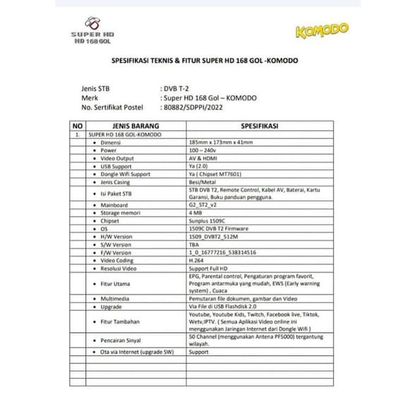 STB Super HD Komodo SET TOP BOX DVB T2 Super Komodo HD 168 UHF TV BOX Digital Antena STB SUPER HD GOL KOMODO KIJANG SUPER HD GOL HARIMAU