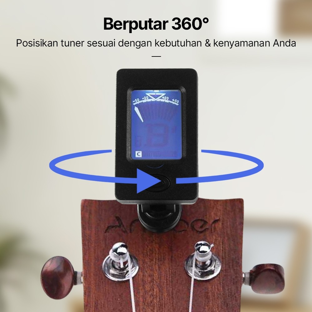 STELAN GITAR Tuner gitar Digital Clip-On Tone Tuner untuk listrik Urikri Bass biola Universal