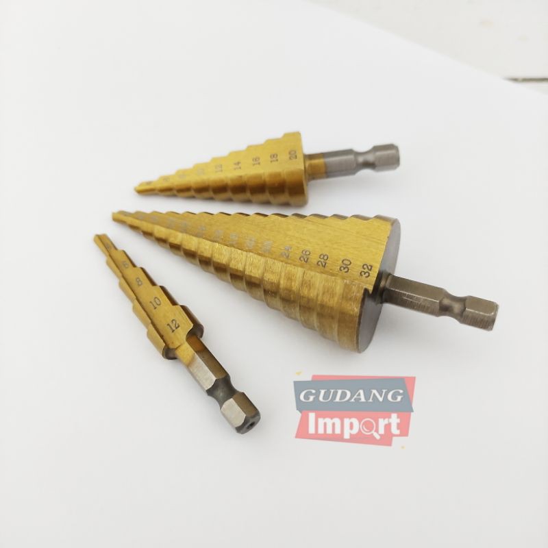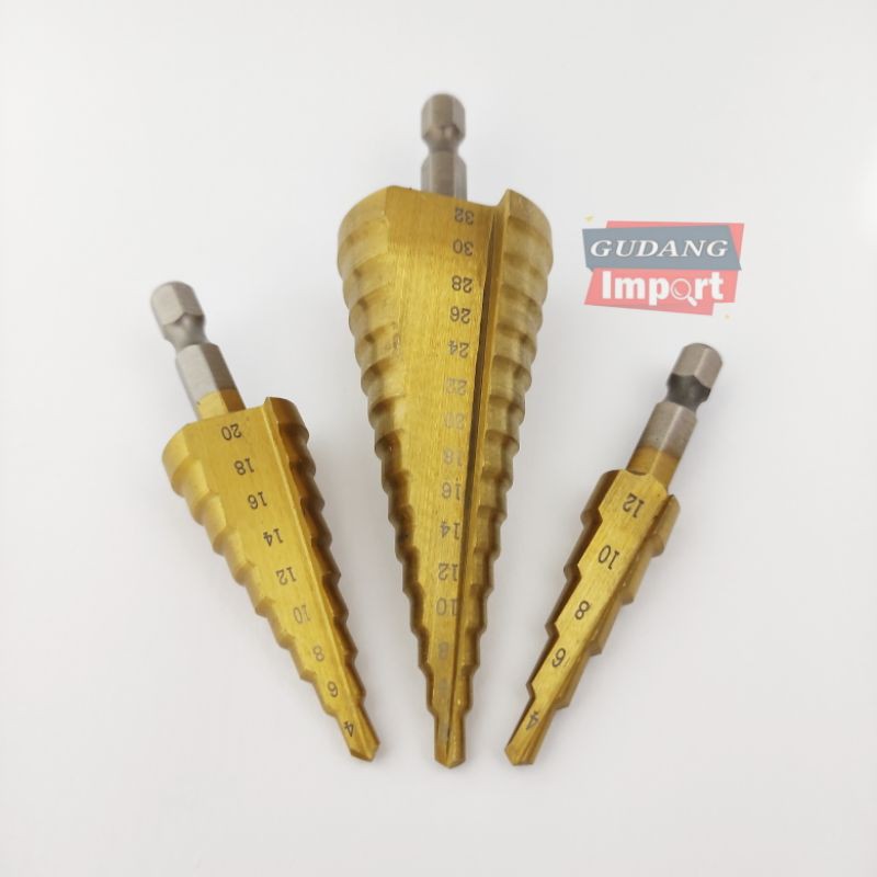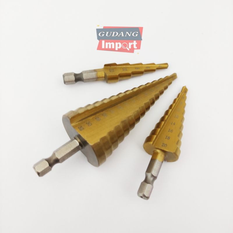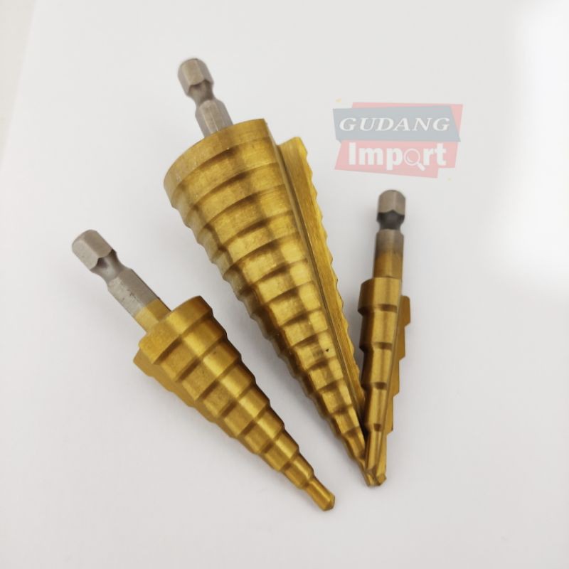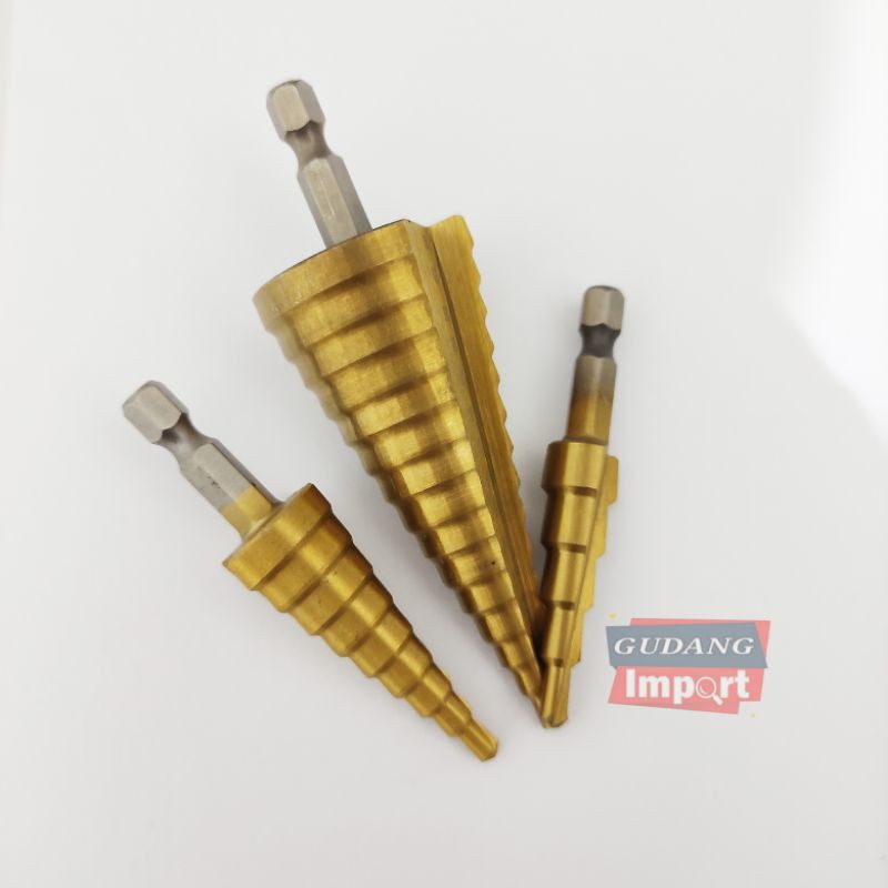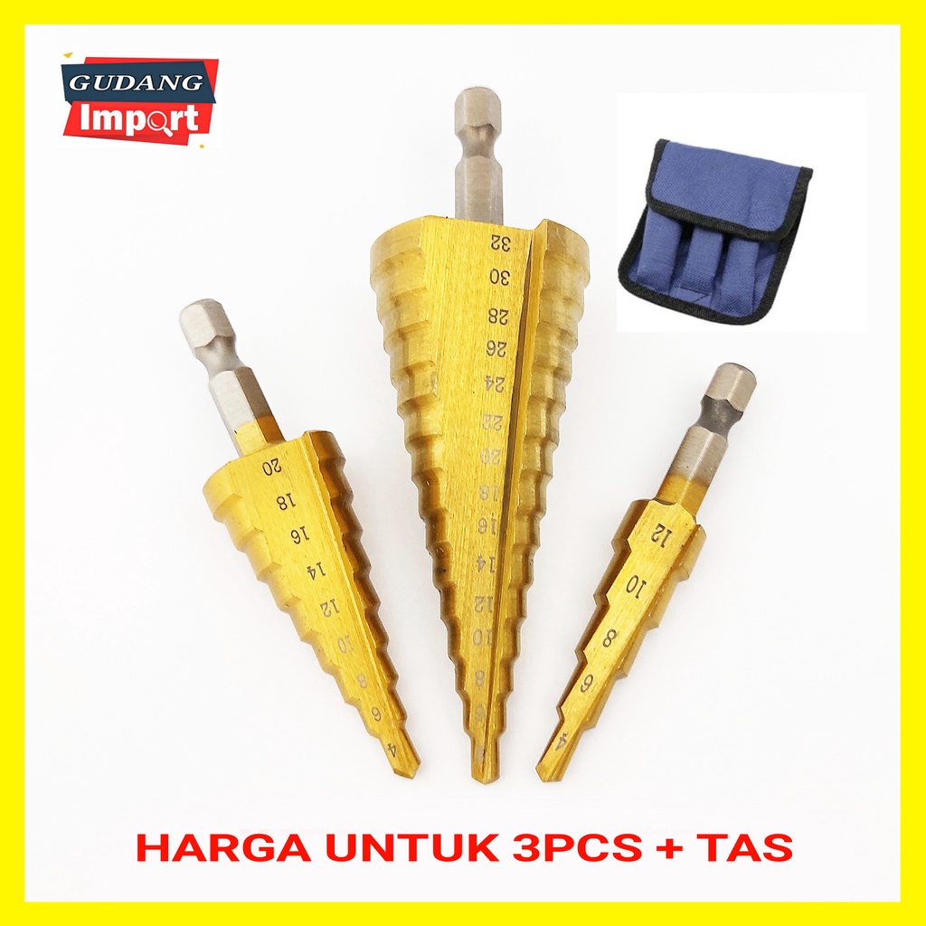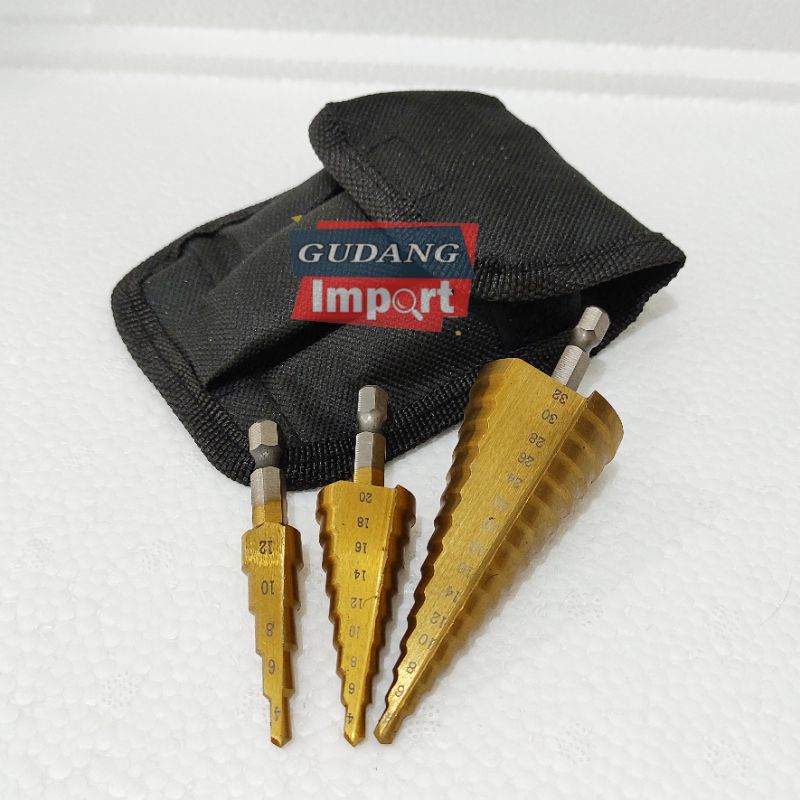 STEP DRILL DRIL MATA BOR PAGODA KERUCUT PEMBOLONG BESI KAYU PLASTIK HOLESAW SET ISI 3