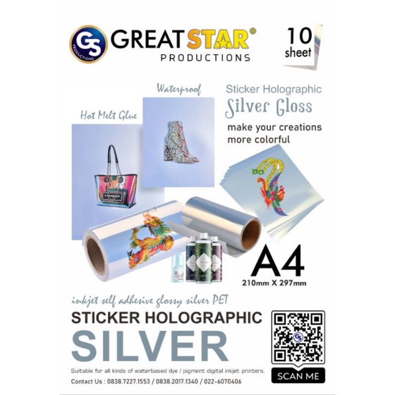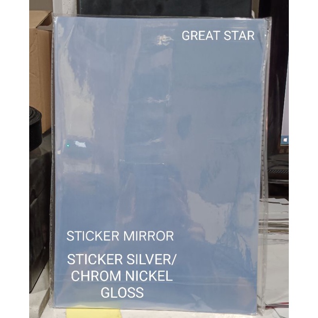 STICKER CHROM NICKEL/SILVER GLOSS HOLOGRAFIC WATER PROFF A4/10 LEMBAR