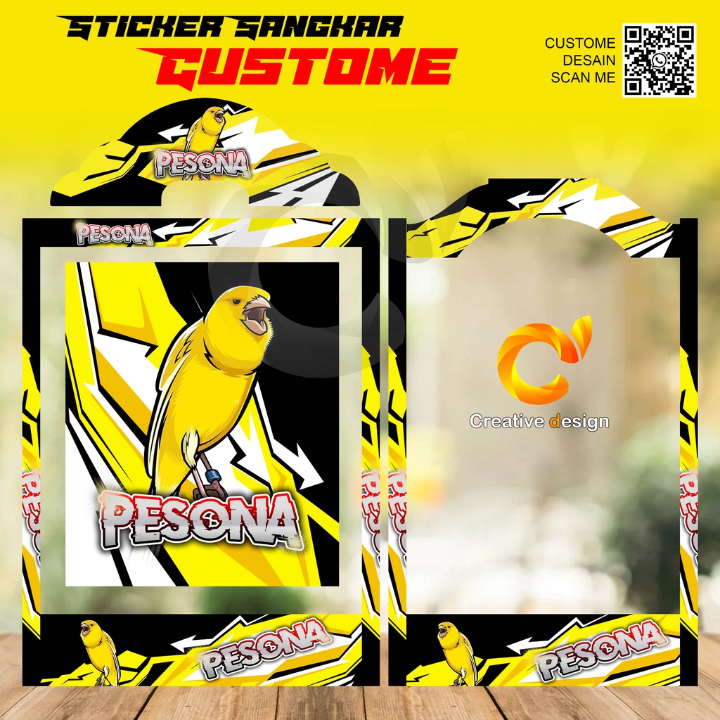 STICKER DECAL SANGKAR KOTAK MOTIF KENARI KUNING