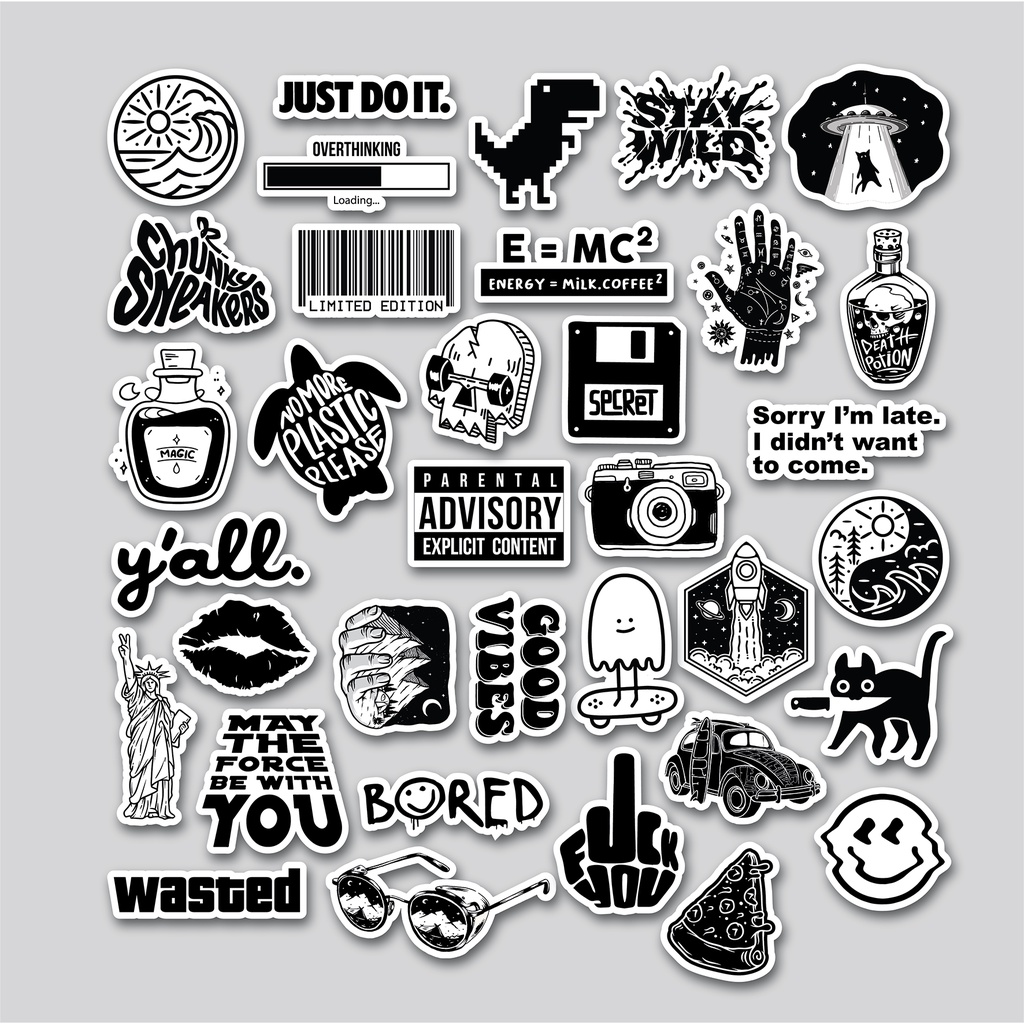 STICKER PACK BLACK & WHITE | STICKER TUMBLR | STIKER LAPTOP KOPER HELM