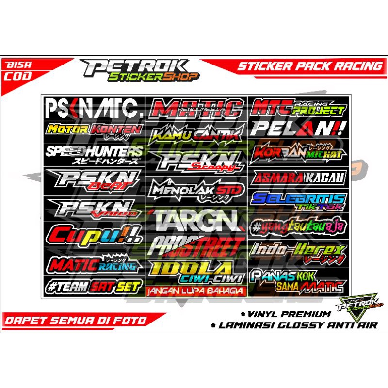 STICKER PACK KATA KATA RACING STIKER MATIC STIKER HELM STIKER VIRAL STIKER PELAN MATIC RACING
