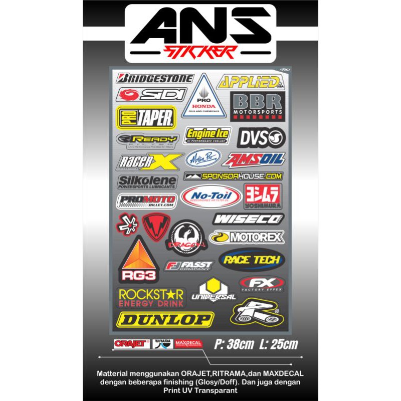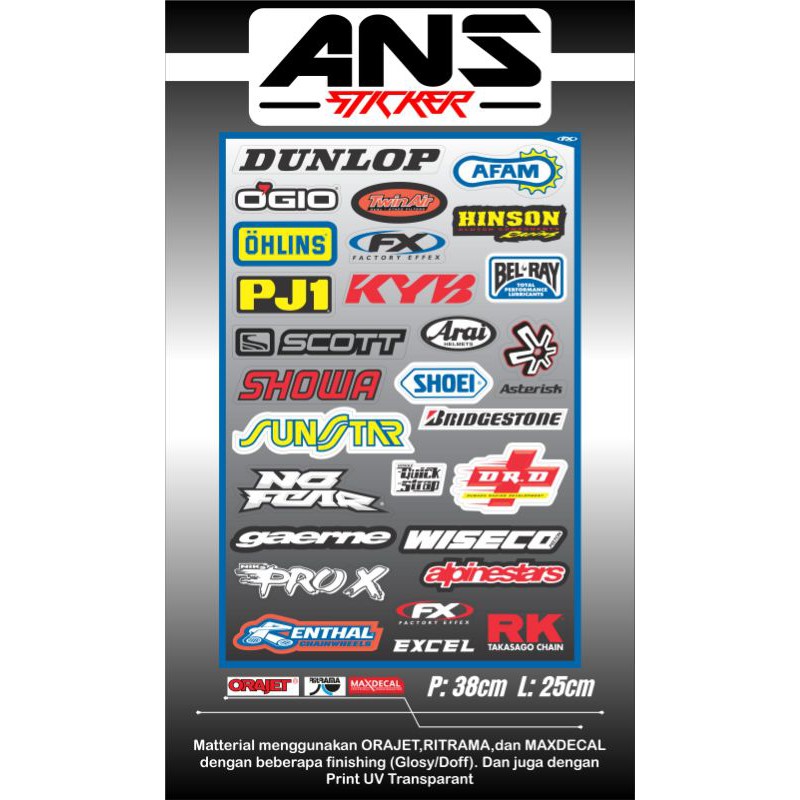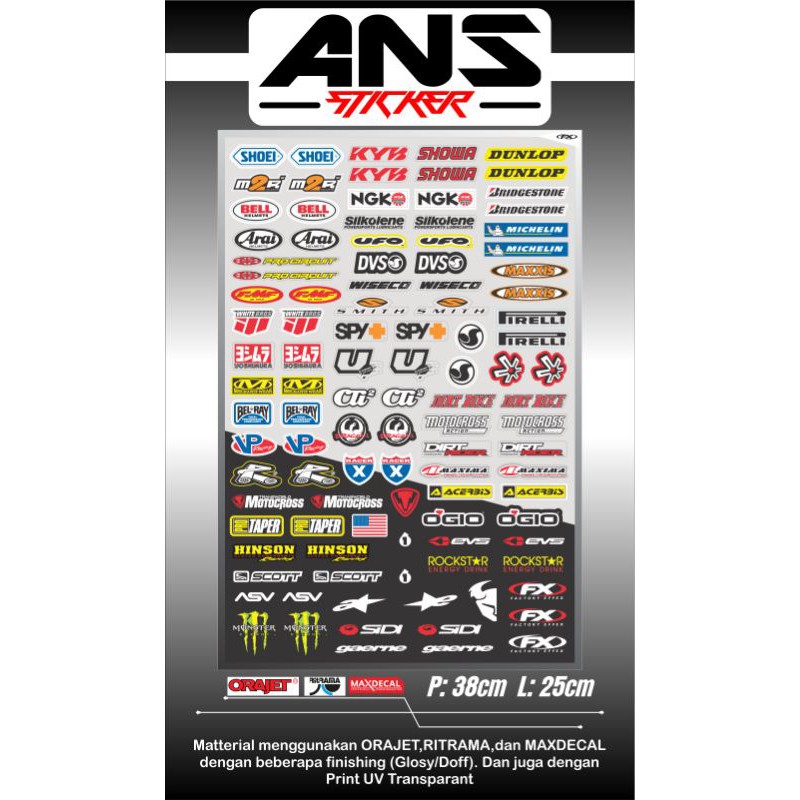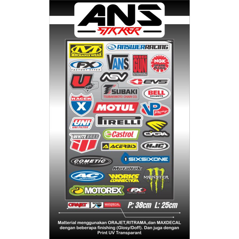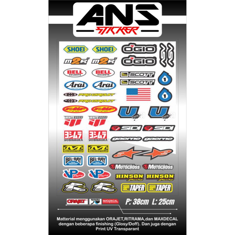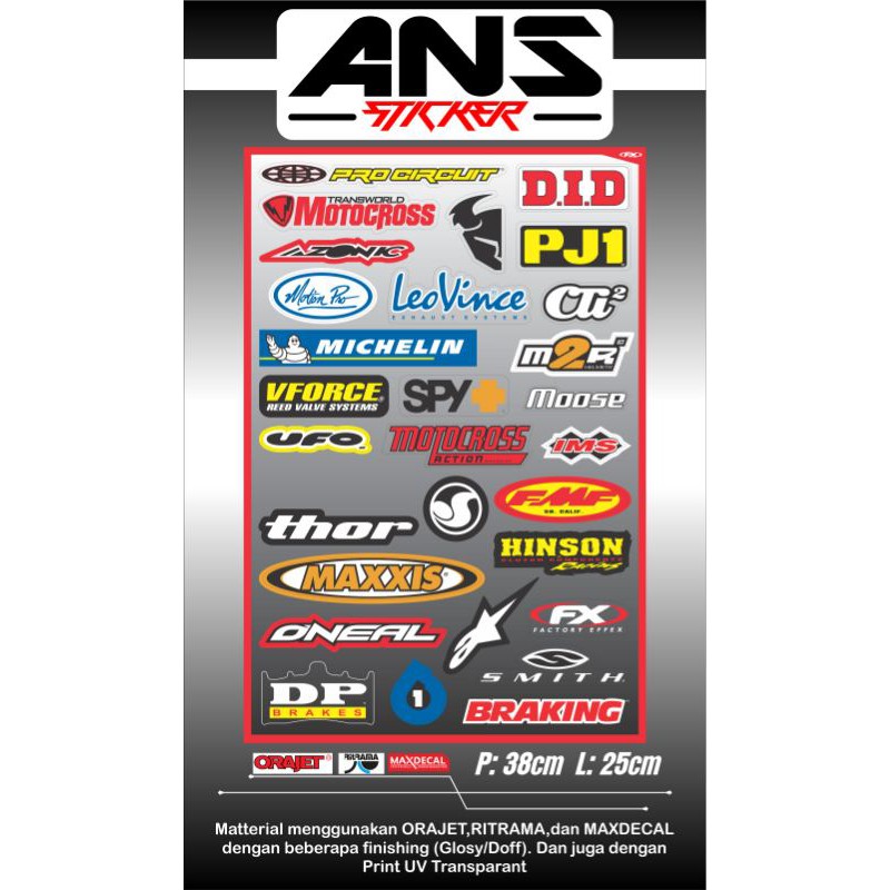 STICKER PACK MOTOCROSS LOGO SPONSOR ANTI AIR, BAHAN BERKUALITAS