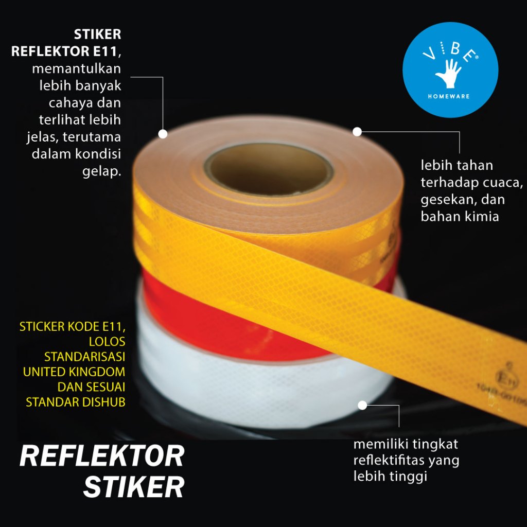 STICKER REFLECTOR MERAH KUNING PUTIH 60 CM E11 / REFLECTIVE TAPE PEMANTUL CAHAYA /UNTUK MOBIL BOX TRUK- UJI KIR DISHUB (IMPORT KOREA)