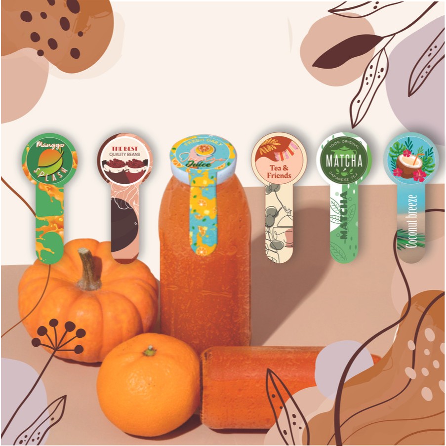 STICKER SEGEL TUTUP BOTOL MINUMAN / STICKER SEGEL JAR / STICKER SEGEL KUE / STICKER LABEL TUTUP BOTOL PER PCS FREE DESIGN FREE CUTTING