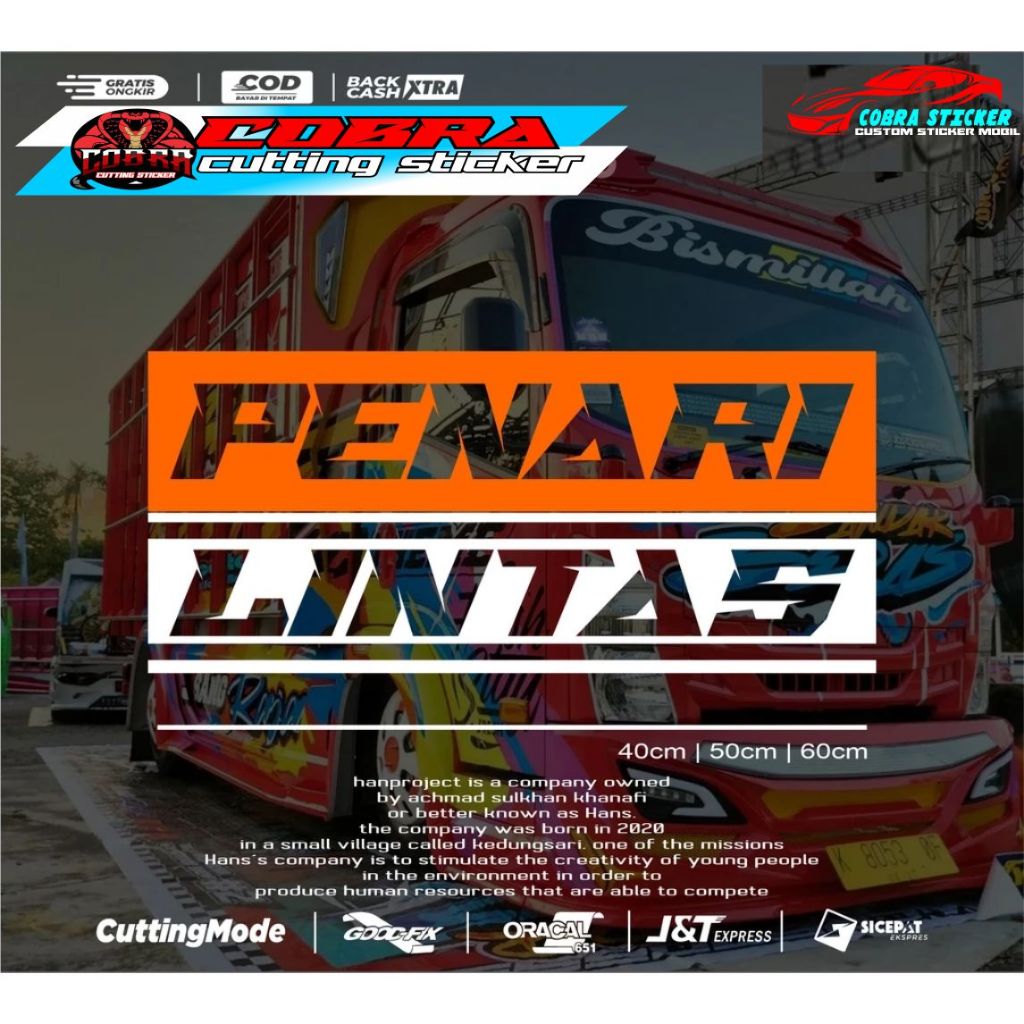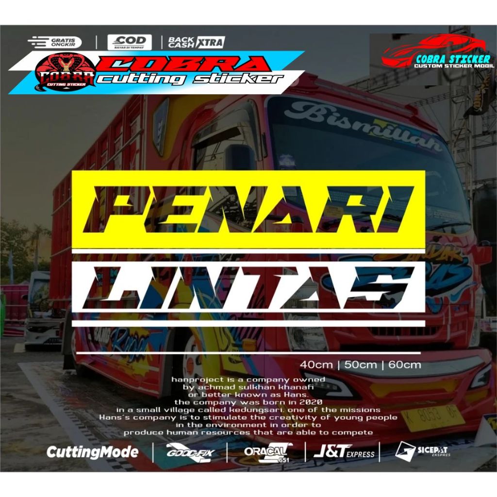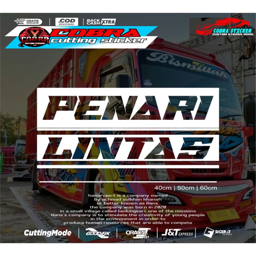 STICKER STIKER TULISAN PENARI LINTAS CUTTING STICKER KACA CANTER TRUCK PICK UP ISUZU TRAGA