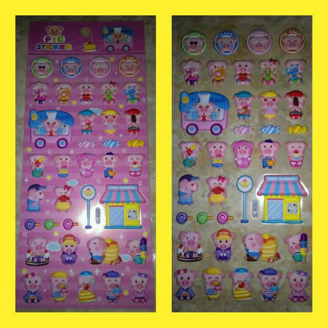 STICKER TIMBUL / STIKER ANAK 3D - MOTIF : ANEKA JENIS BABI PIGGY PIG LUCU
