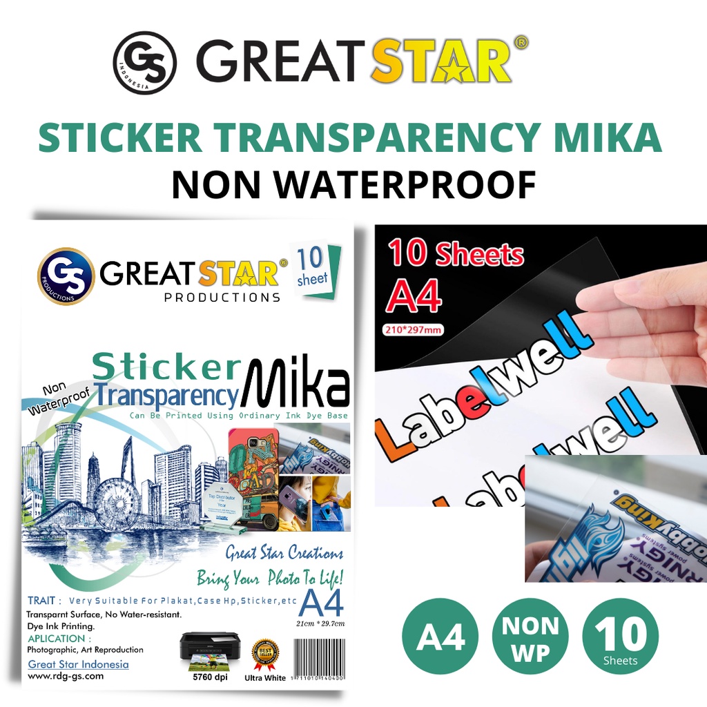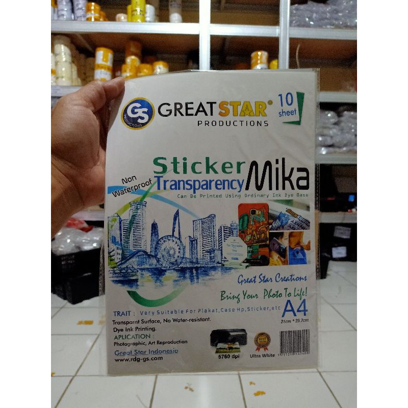 STICKER TRANSPARANT MIKA/STICKER PET FILM For DYE INK or inkjet A4/10 LEMBAR
