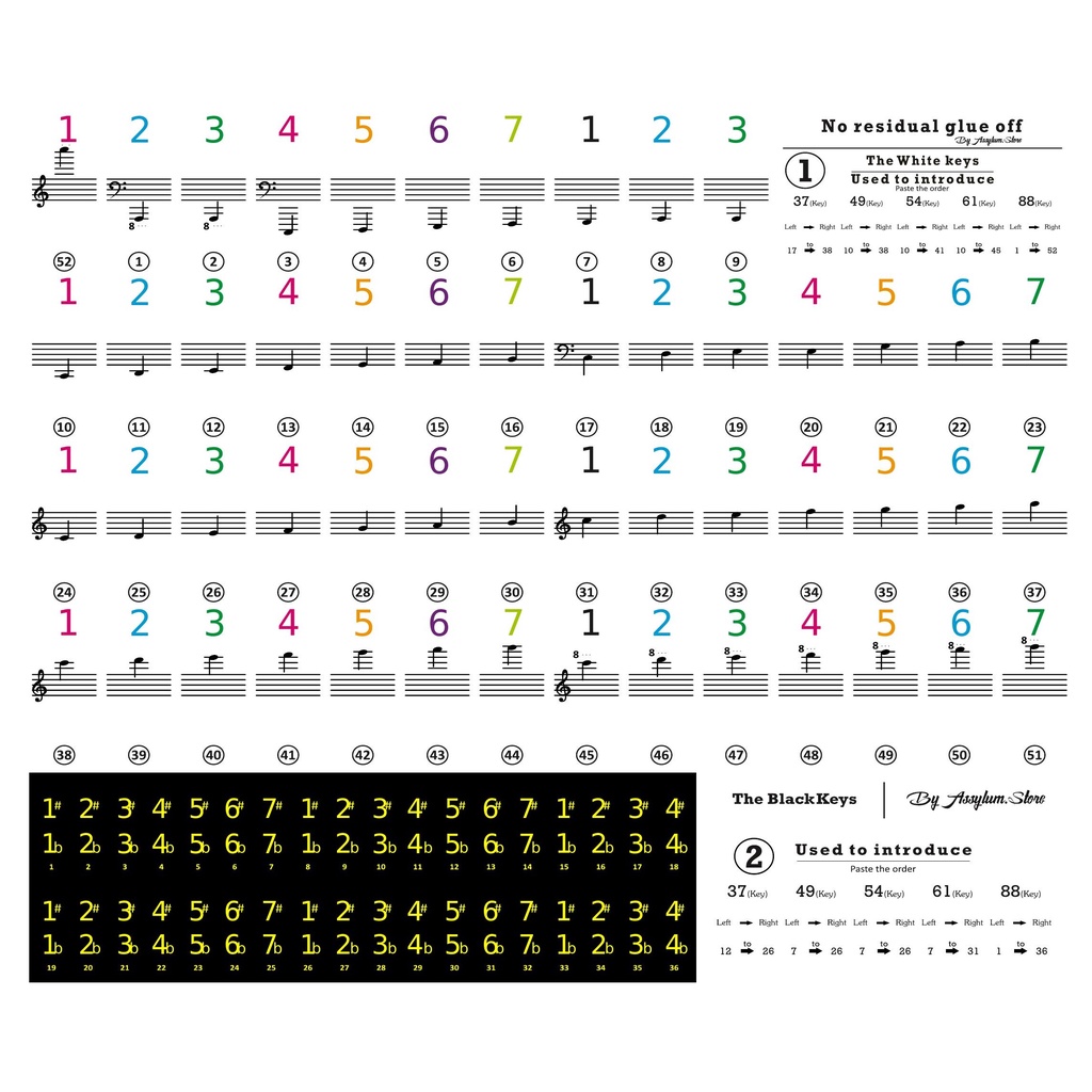STICKER TUTS PIANO/KEYBOARD ANGKA TRANSPARAN,REUSEABLE (CUTTING STICKER)