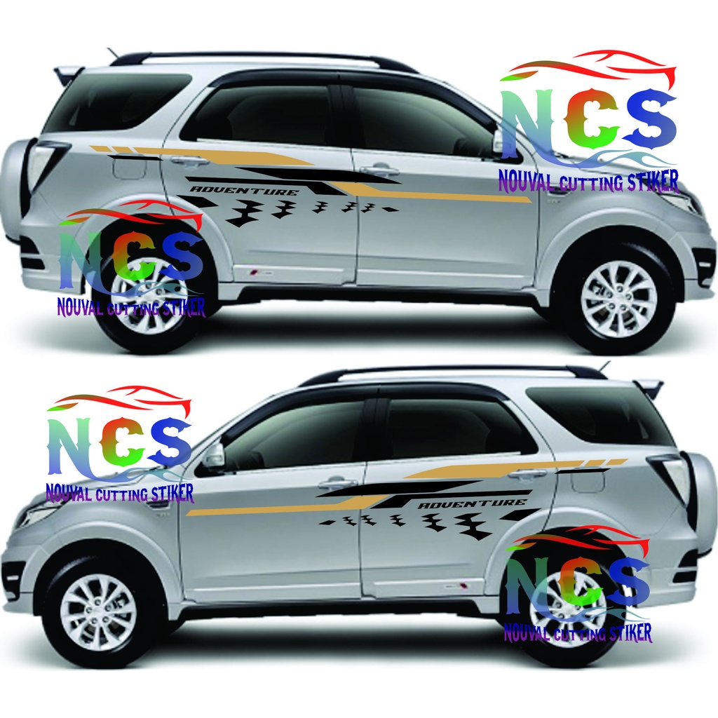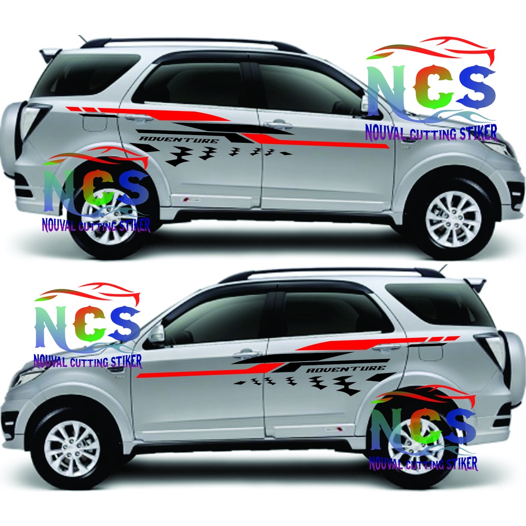 STICKER VARIASI BODY SAMPING CUTTING STICKER VARIASI MOBIL TERIOS RUSH HITAM PUTIH SILVER KEREN