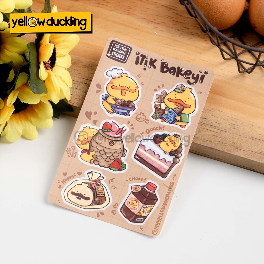 STICKERS - ITIK BEKEYI EDITION STICKER SET - STIKER ITIK BAKERY - YELLOW DUCKLING HANDDRAWN TOKO ROTI MR ITIK - LIMITED EDITION - JURNAL STUDYGRAM DOFF MATTE FINISH WATERPROOF