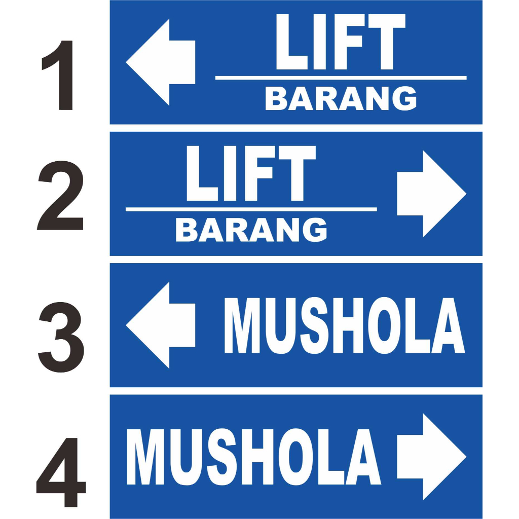 STIKER ARAH LIFT BARANG DAN MUSHOLA ISI 4PCS 45X15/MODEL