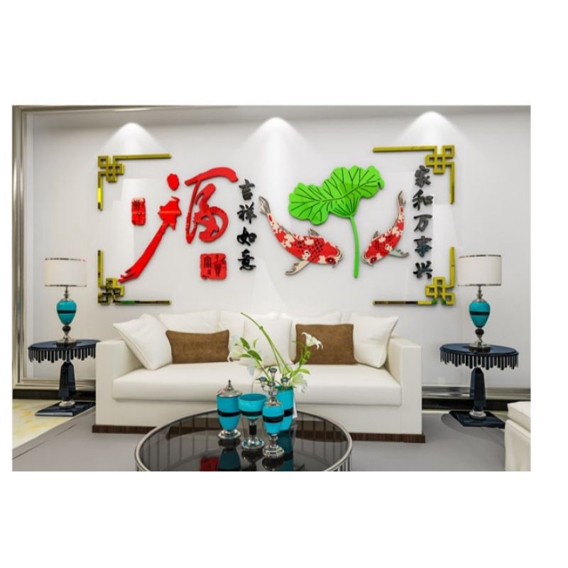 STIKER Akrilik Stiker Imlek Stiker Akrilik Imlek Stiker Dinding Akrilik Fu Stiker Akrilik Koi Stiker Akrilik Teratai