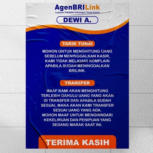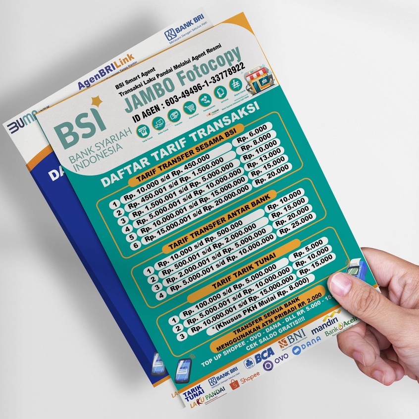 STIKER / POSTER DAFTAR TARIF TRANSAKSI BRILINK, MANDIRI, MENU MAKANAN, DLL