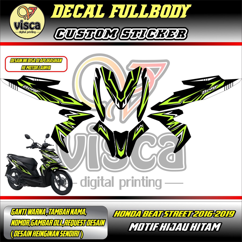 STIKER DECAL - STRIPING HONDA BEAT STREET - STIKER MOTOR FULL BODY HONDA BEAT STREET HITAM HIJAU