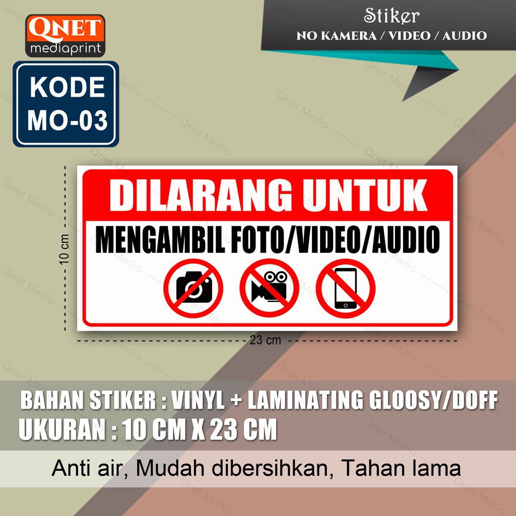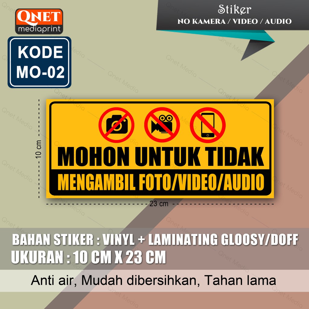 STIKER DILARANG MENGAMBIL FOTO VIDEO AUDIO + LAMINATING GLOSSY/DOFF