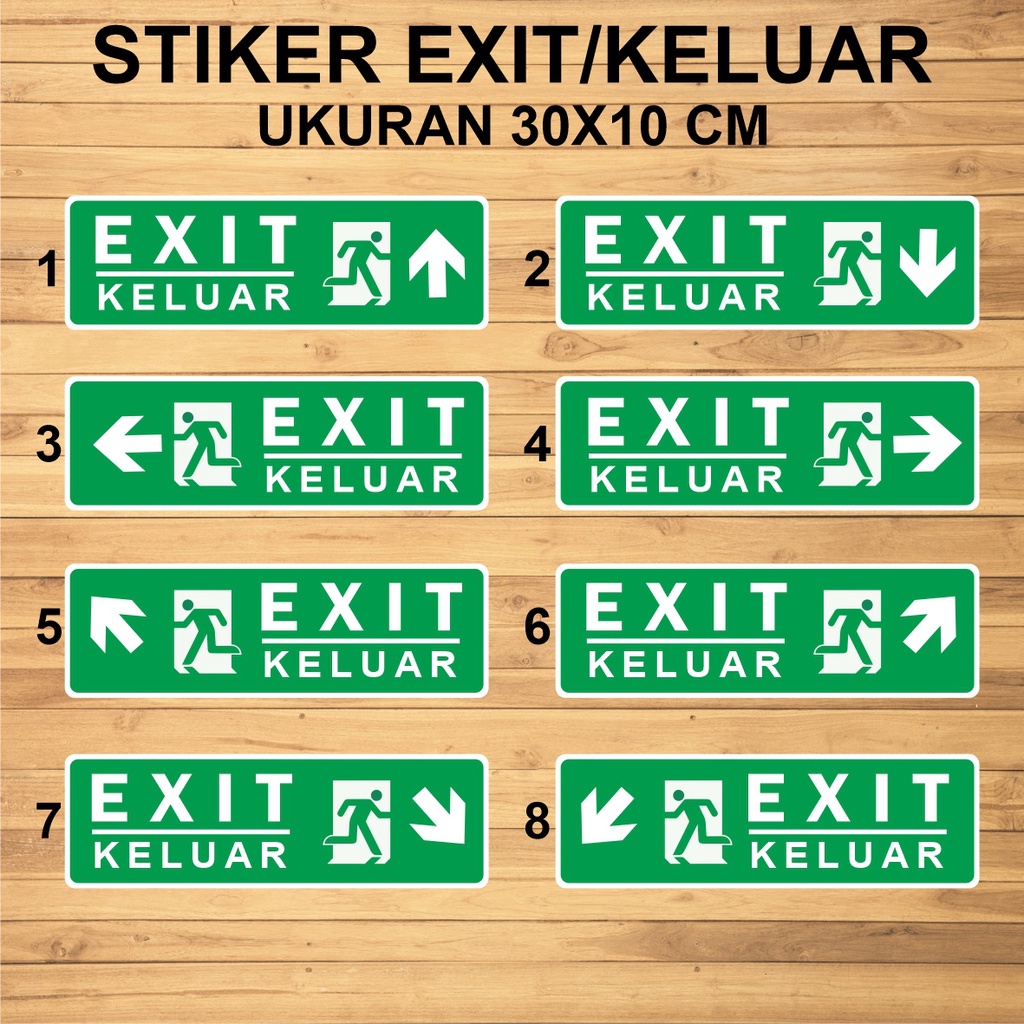 STIKER EXIT, PENUNJUK ARAH JALAN KELUAR, JALUR EVAKUASI, PINTU DARURAT