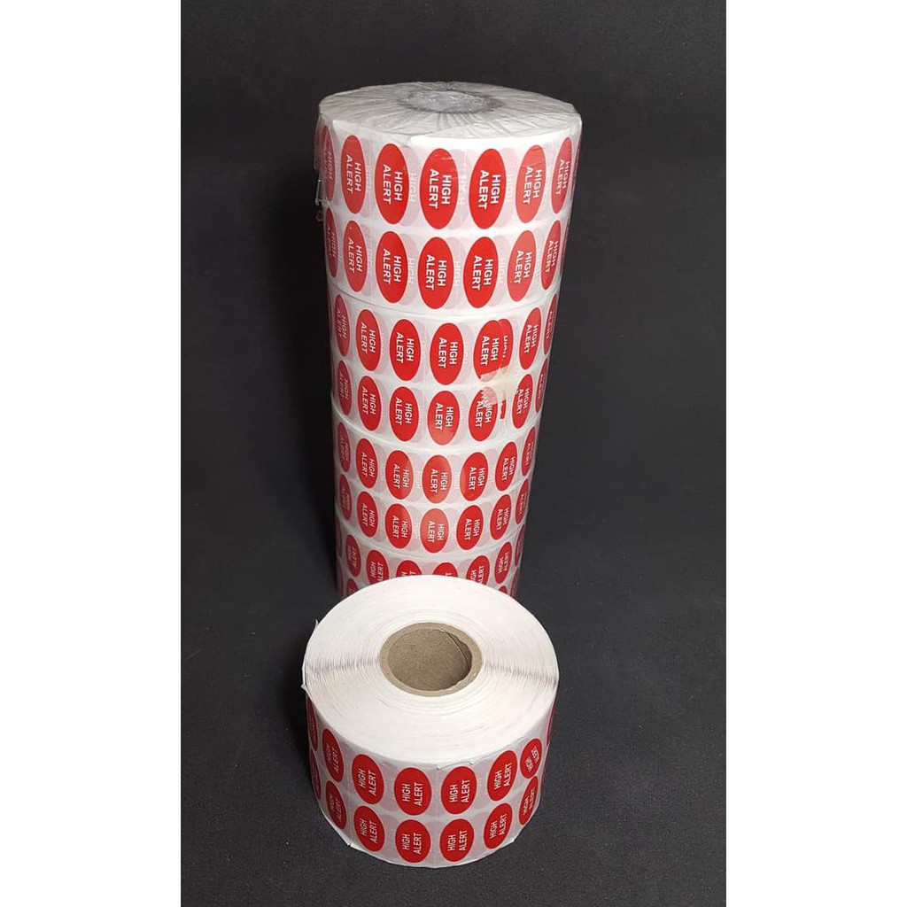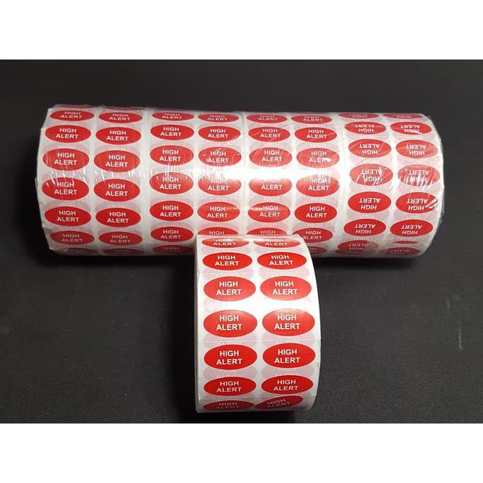 STIKER HIGH ALERT MERAH OVAL 20X15mm isi 5000 pcs in ROLL