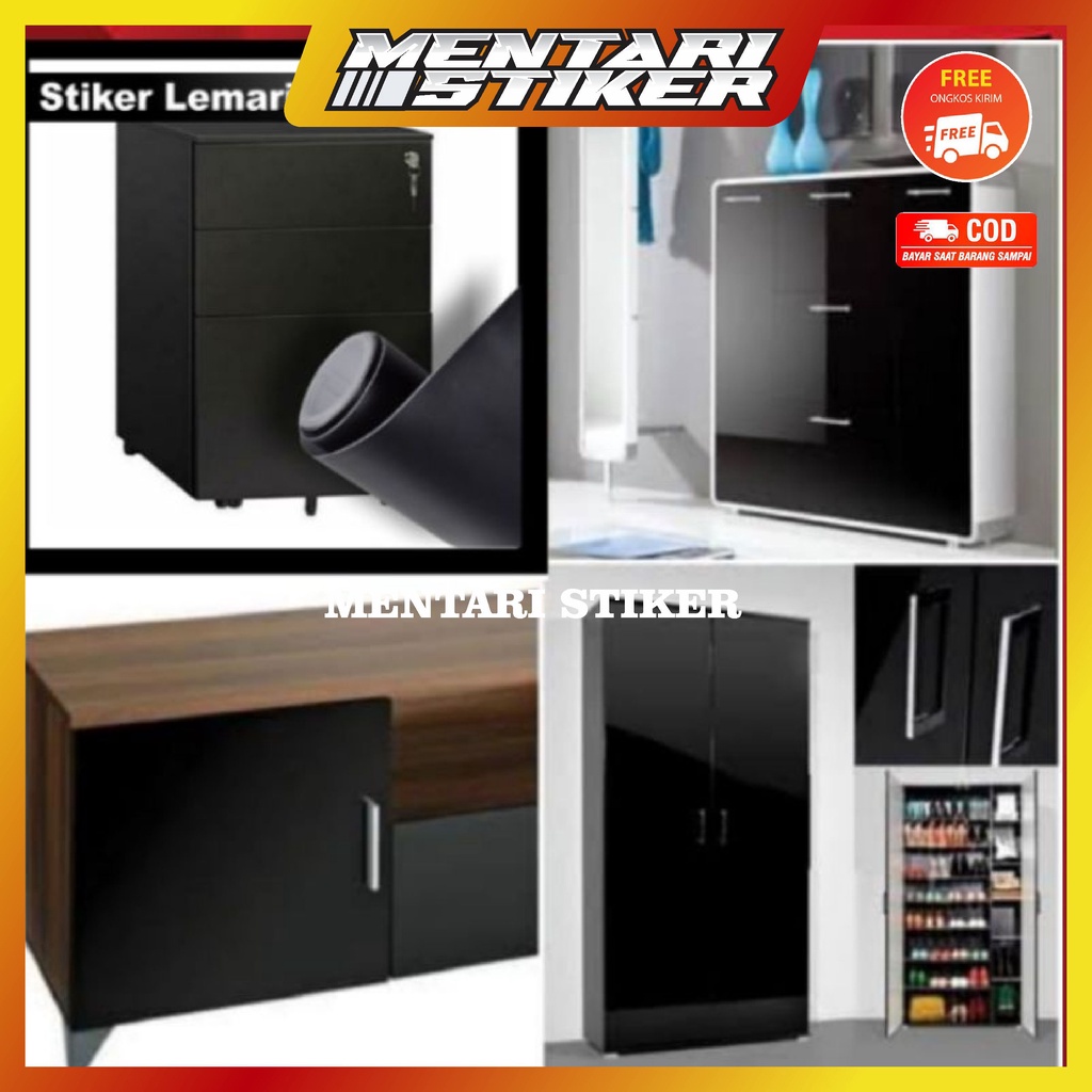 STIKER HITAM WALLSTICKER LEMARI KAYU STIKER KULKAS WALLSTIKER LEMARI HITAM POLOS