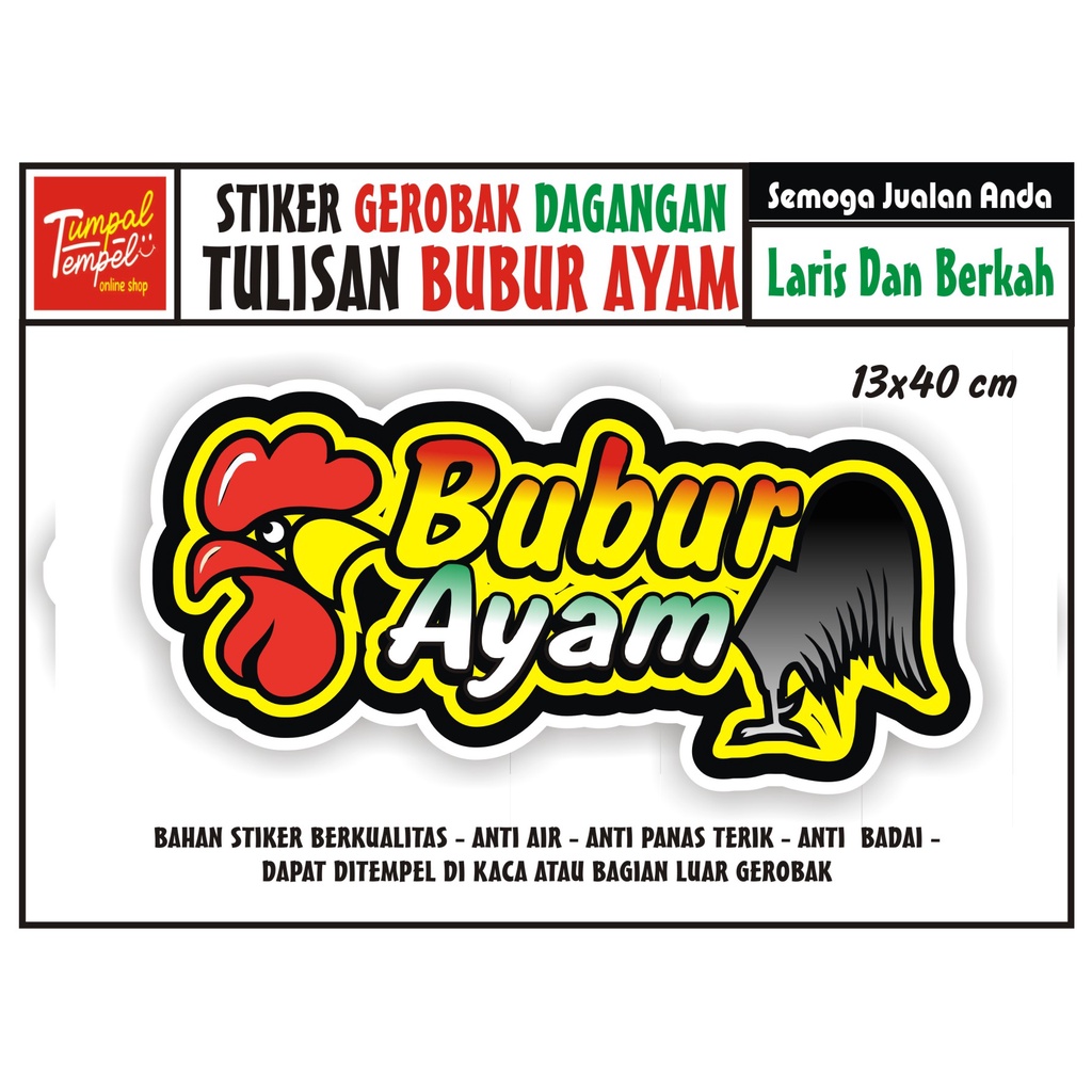 STIKER KACA GEROBAK TULISAN BUBUR AYAM FULL COLOUR /NAMA TOKO/NAMA USAHA