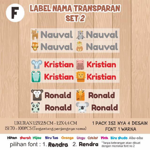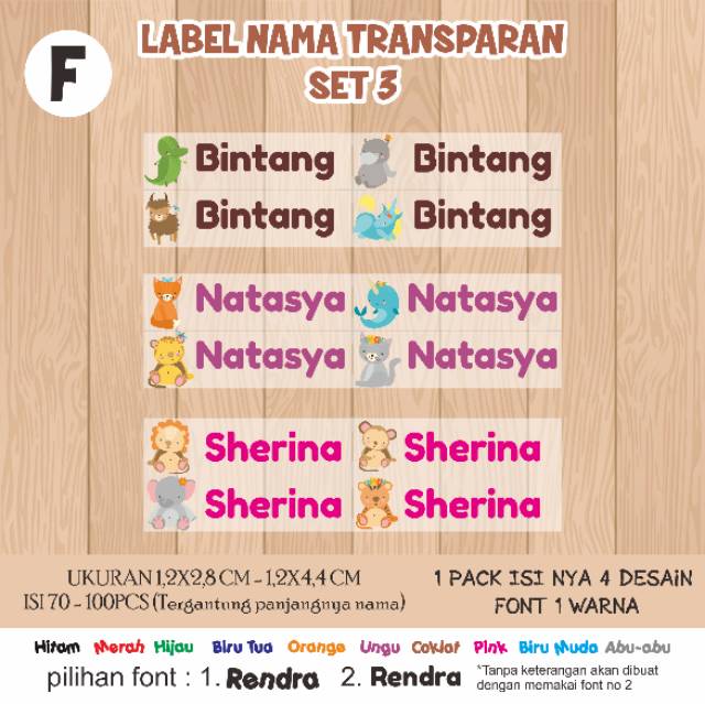 STIKER LABEL NAMA (F) TRANSPARAN WATERPROOF Karakter LABEL F