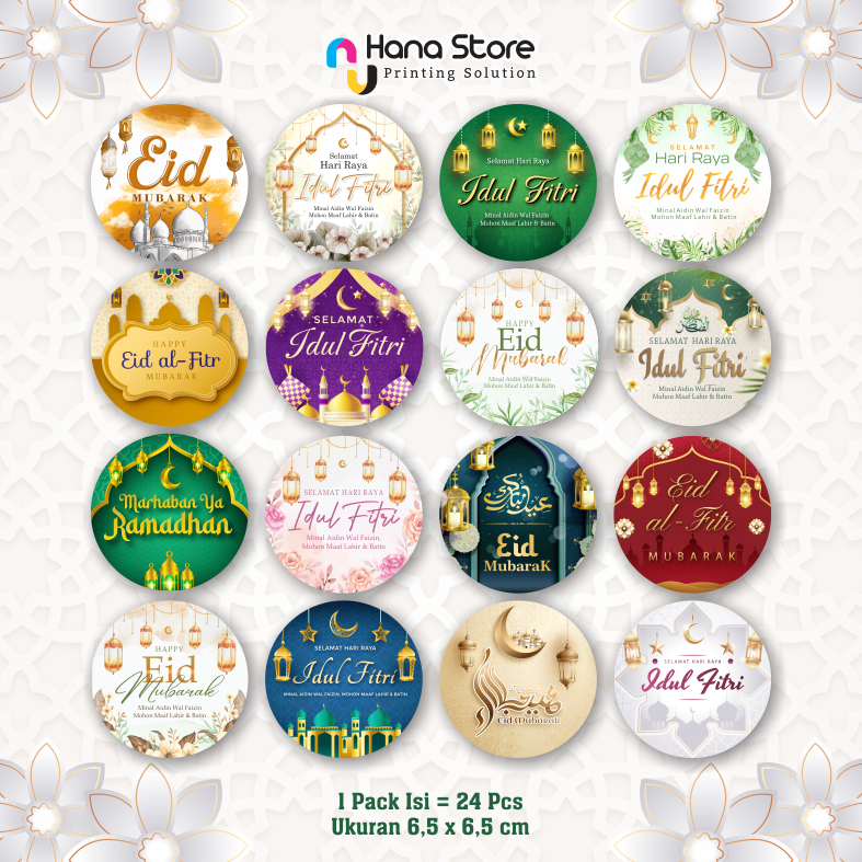 STIKER LEBARAN BULAT (isi 24 Pcs) / Sticker Segel Toples Parcel Ramadhan / Label Bulat Idul Fitri