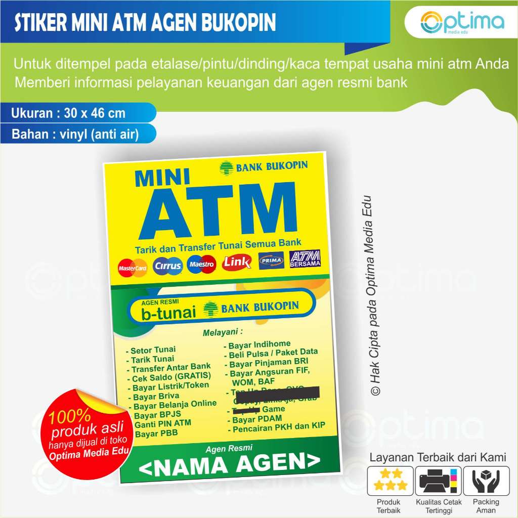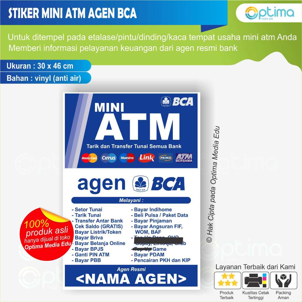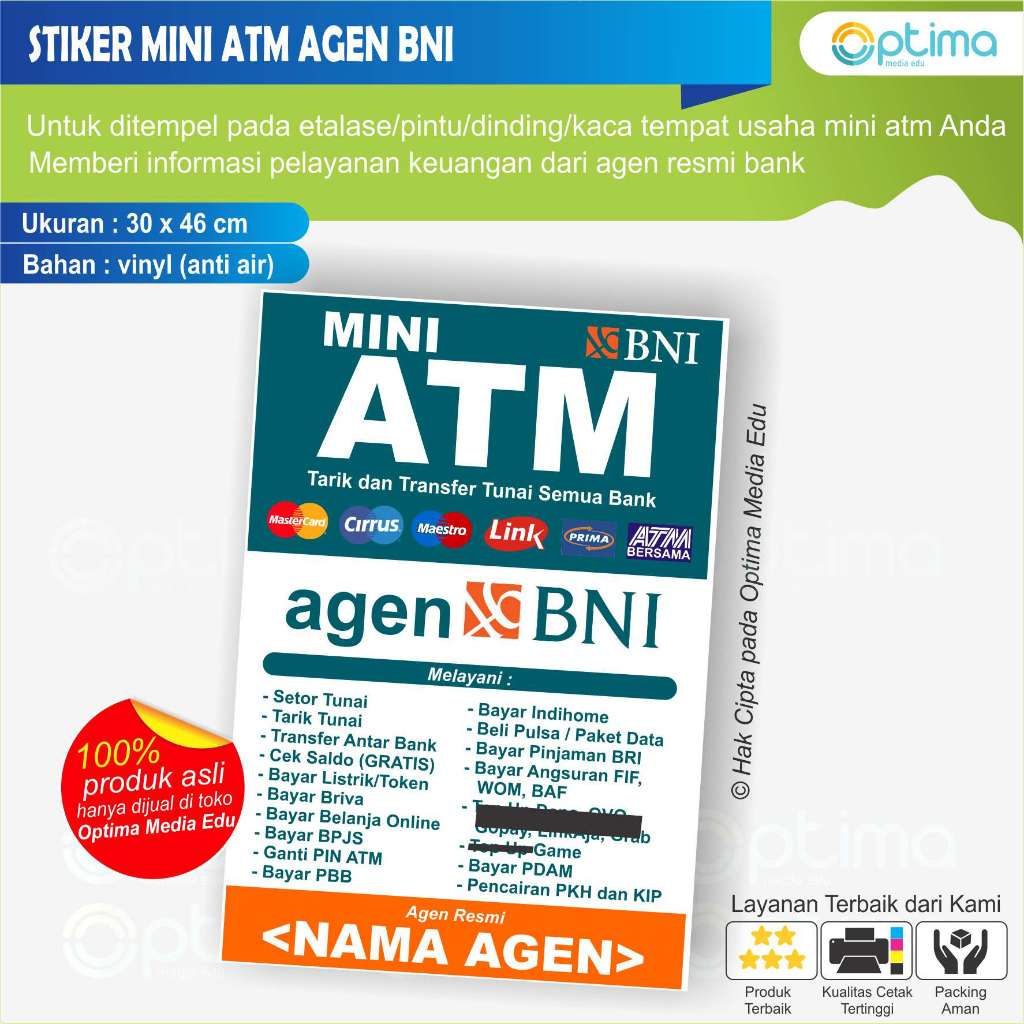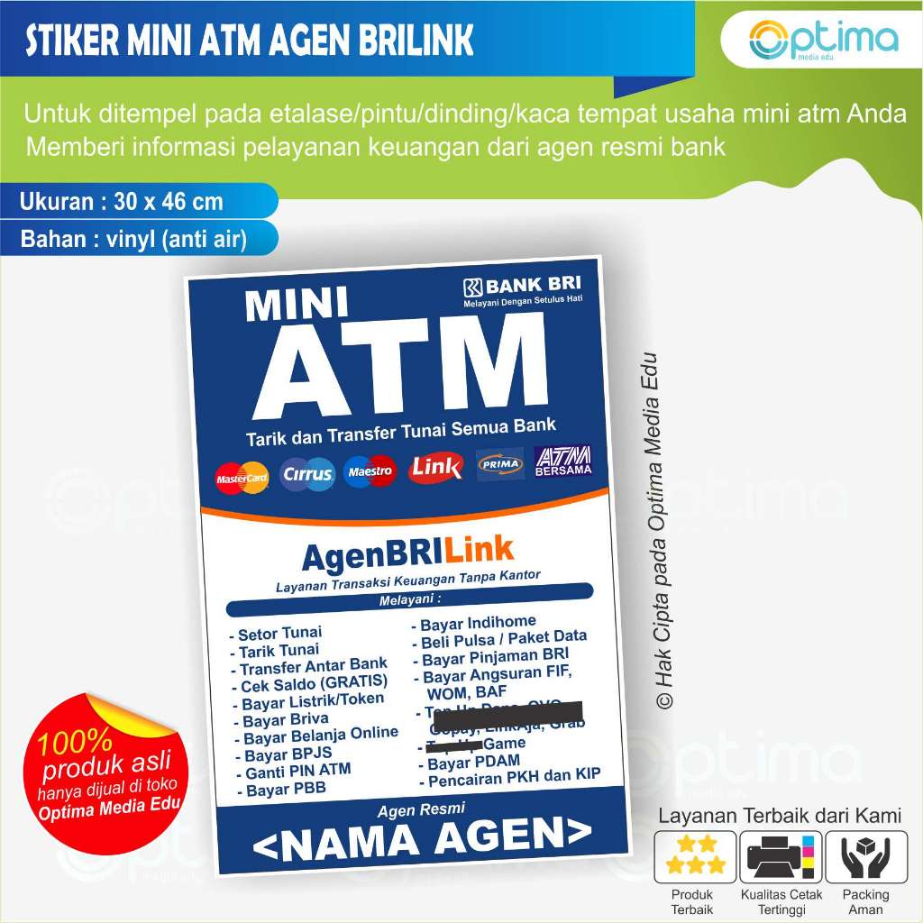 STIKER MINI ATM DAN AGEN BRILINK, AGEN BNI 46, MITRA MANDIRI, AGEN BUKOPIN, bca, bsi, lainnya