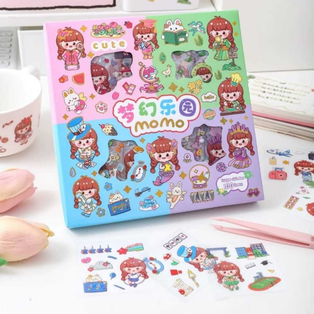 STIKER MOMO KARTUN AESTHETIC WATERPROOF 1 BOX ISI 100 PCS/ STIKER KARTUN LUCU ANTI AIR DEKORASI HANDBOOK